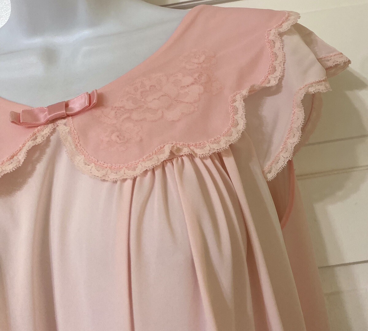 как выглядит Vintage Shadowline Short Nightgown Short Sleeve Pink Lace Small фото