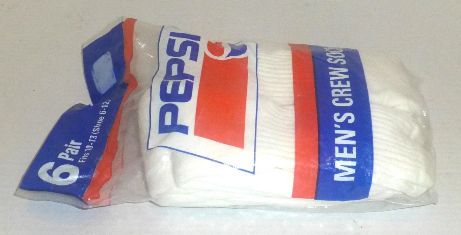 Vintage Pepsi Men's Crew Socks 6-Pair Fits 10-13 Shoe 6-12 White