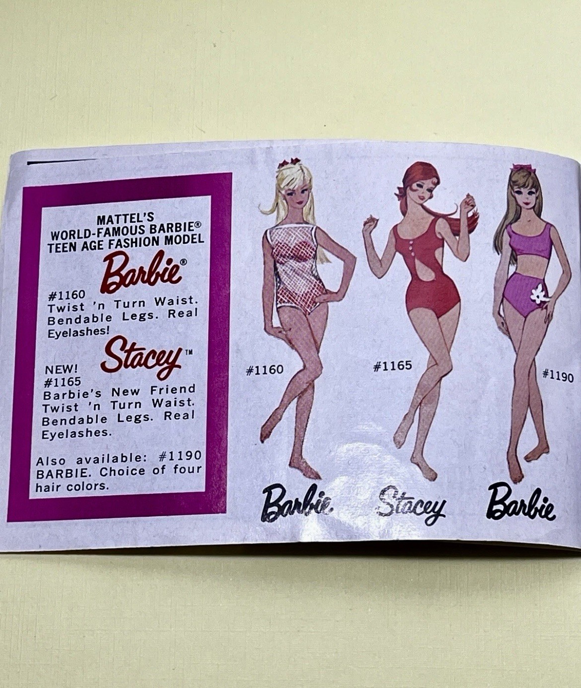 Character: Barbie, Casey, Francie, Ken, Skipper, Twiggy, Stacey