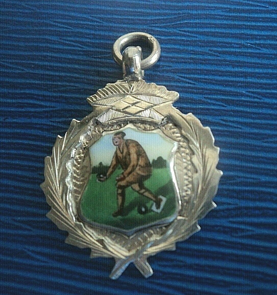 Sterling Silver Enamel Medal / Fob Pendant - Bowling / Bowls 1938 Birmingham