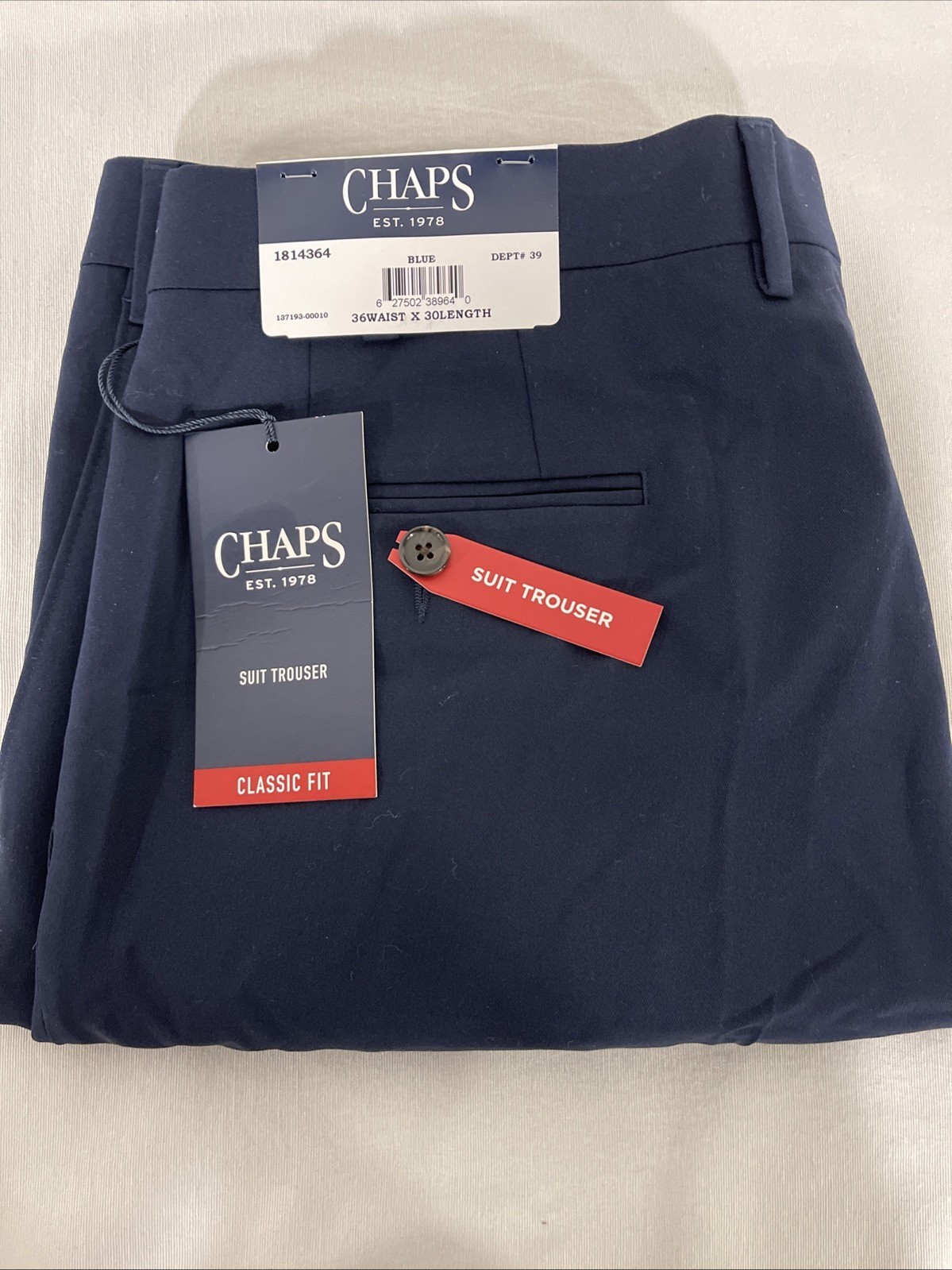 как выглядит Chaps Mens Classic Fit Flat Front Pant, Color Blue Size 36X30 фото