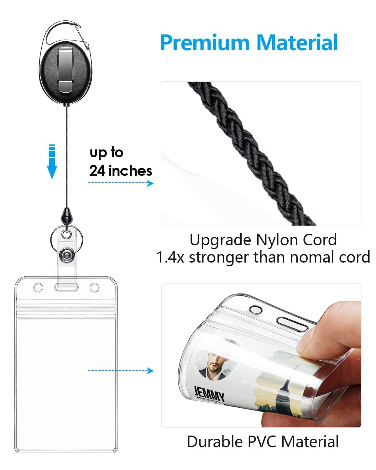 как выглядит 2 Pack Retractable ID Badge Holder with Clip Badge Reels, Clear ID Card Holder фото