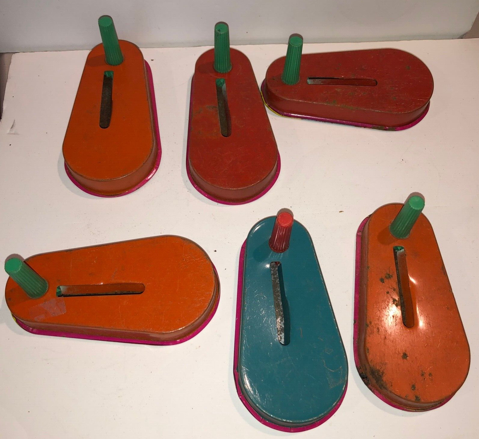Lot of 6 Vintage Noisemakers New Years Eve Metal Toy Mfg Party CRANK TOYS