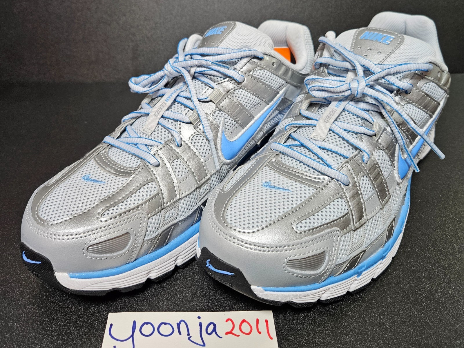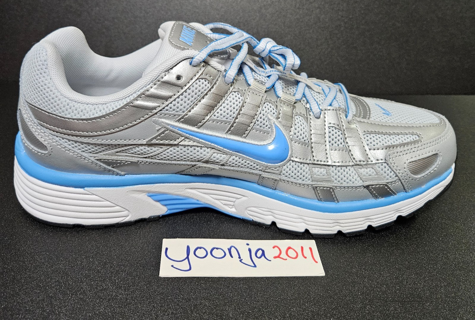 как выглядит Nike P-6000 - US Size 11 - Metallic Platinum/University Blue - Style CD6404 025 фото