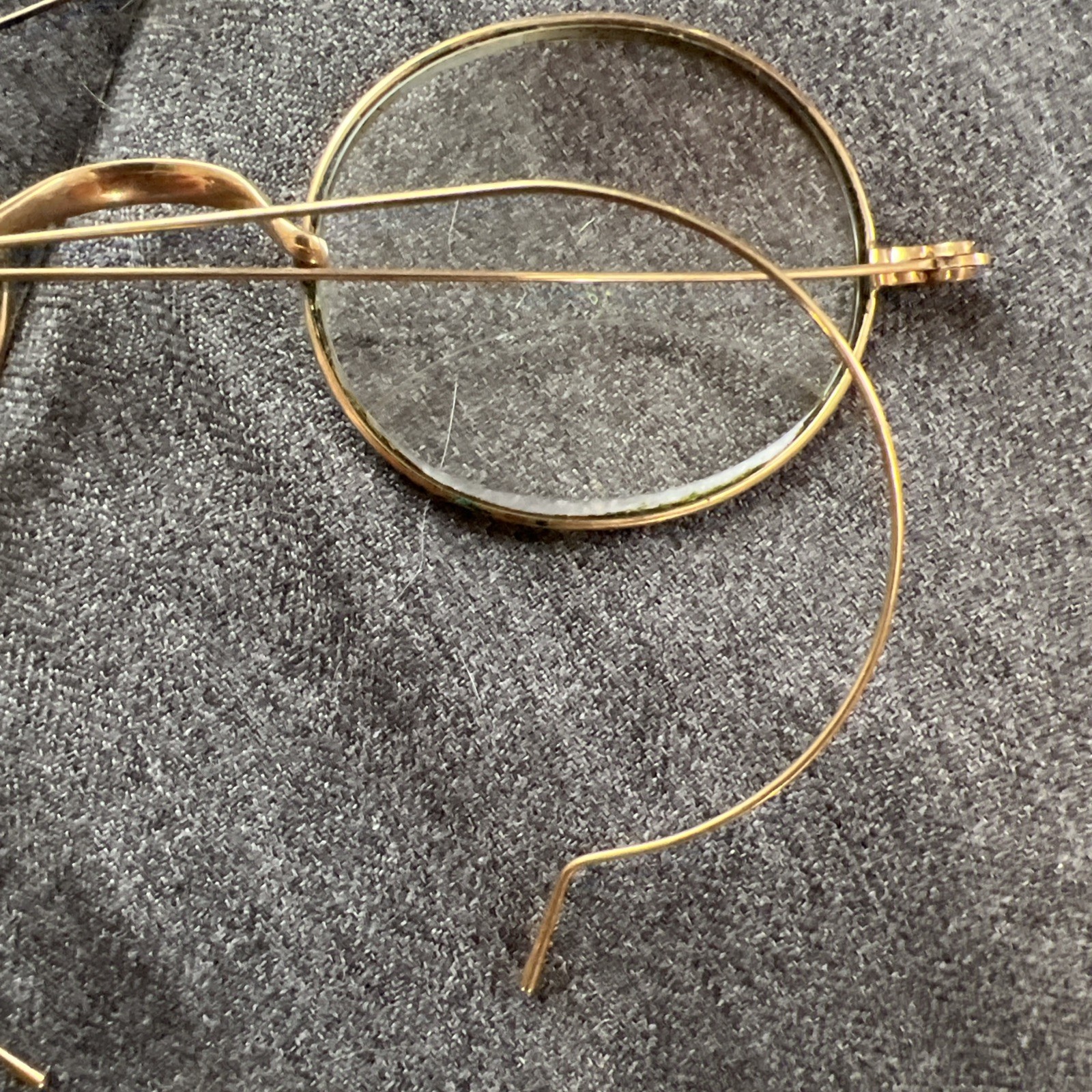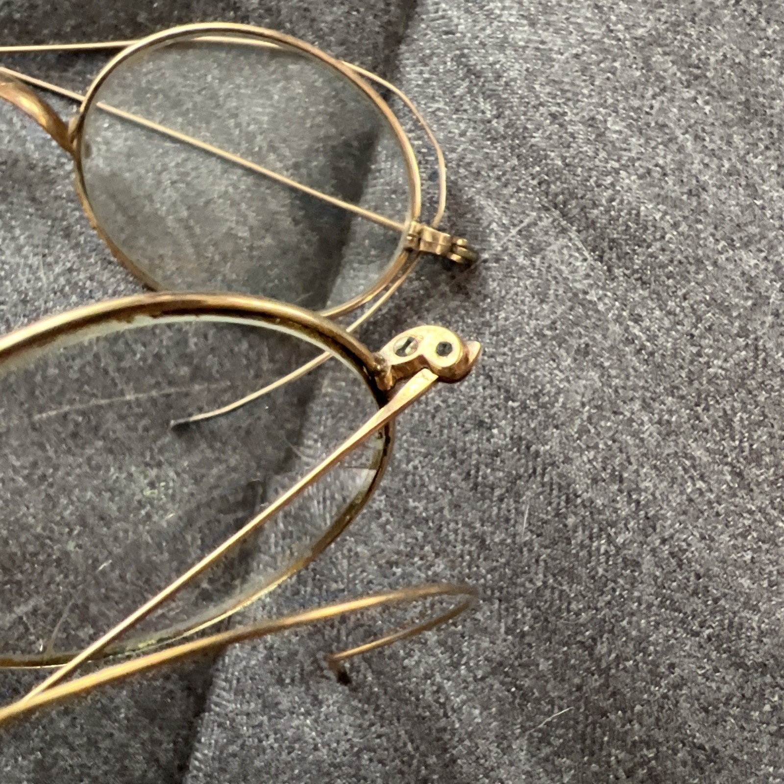 как выглядит Antique Gold Filled Eyeglass Frames and Case Wire Rim Oval Round Spectacles CT фото