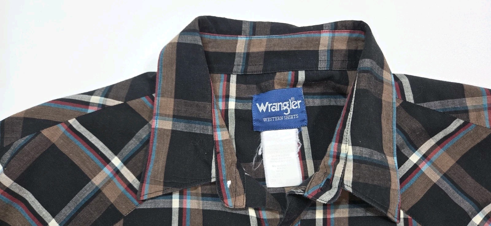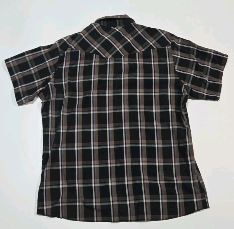 как выглядит Vintage Wrangler 90s Brown Plaid Button Down Pearl Snap Short Sleeve Shirt XXL фото