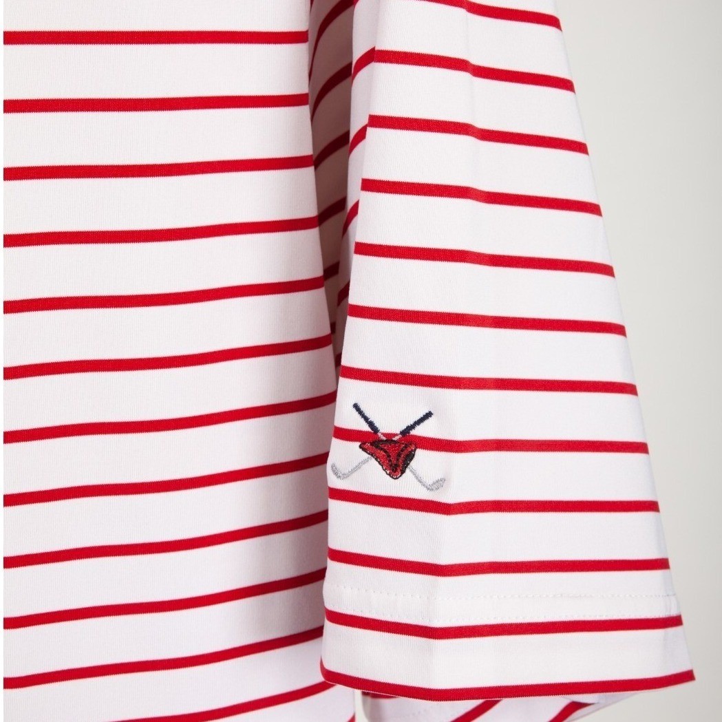 как выглядит FootJoy Golf Polo Shirt Mens Large Red White Striped Performance Short Sleeve L фото