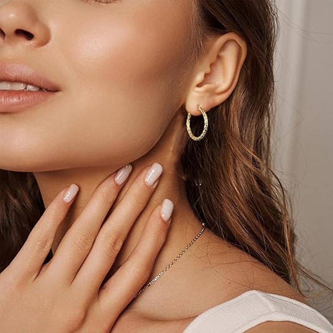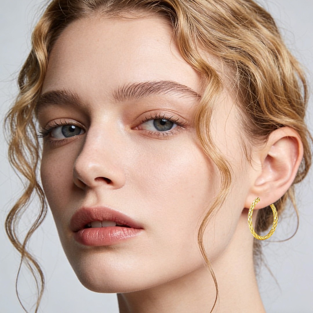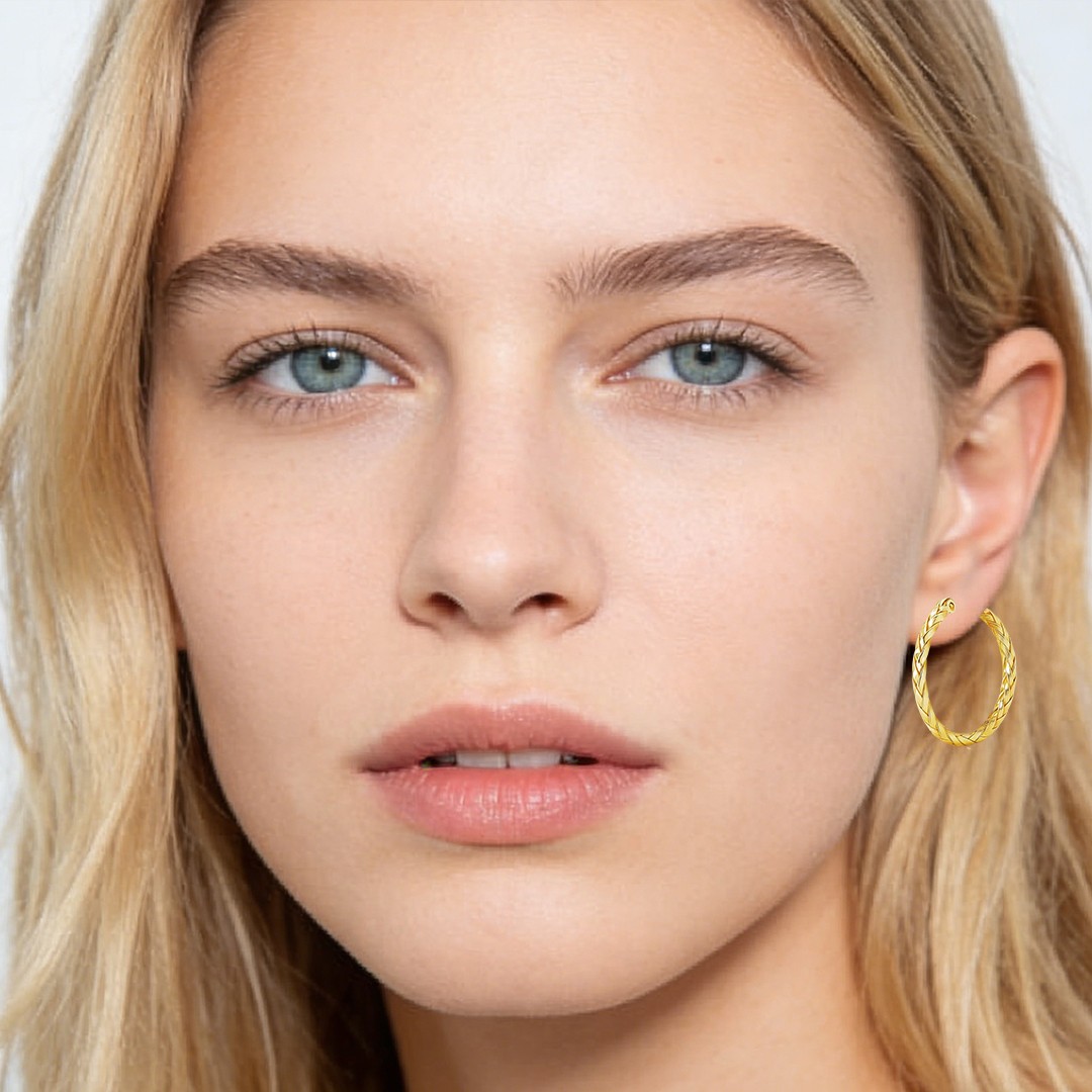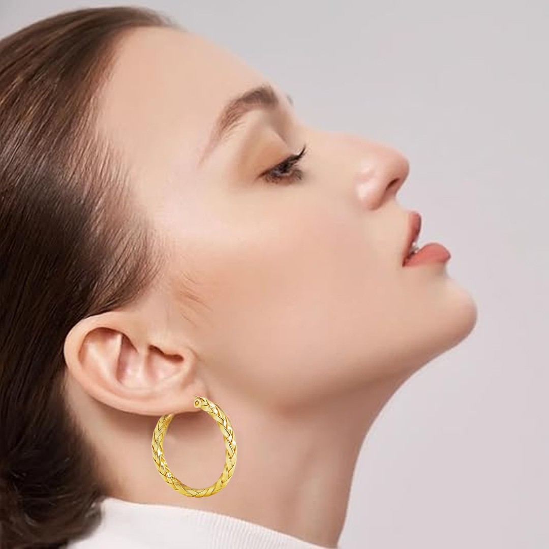как выглядит 14K Gold Earrings for Women Weave Design Hoop Earrings Classic Earring 30MM фото