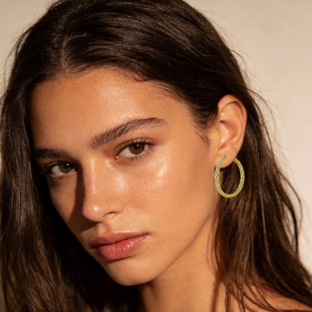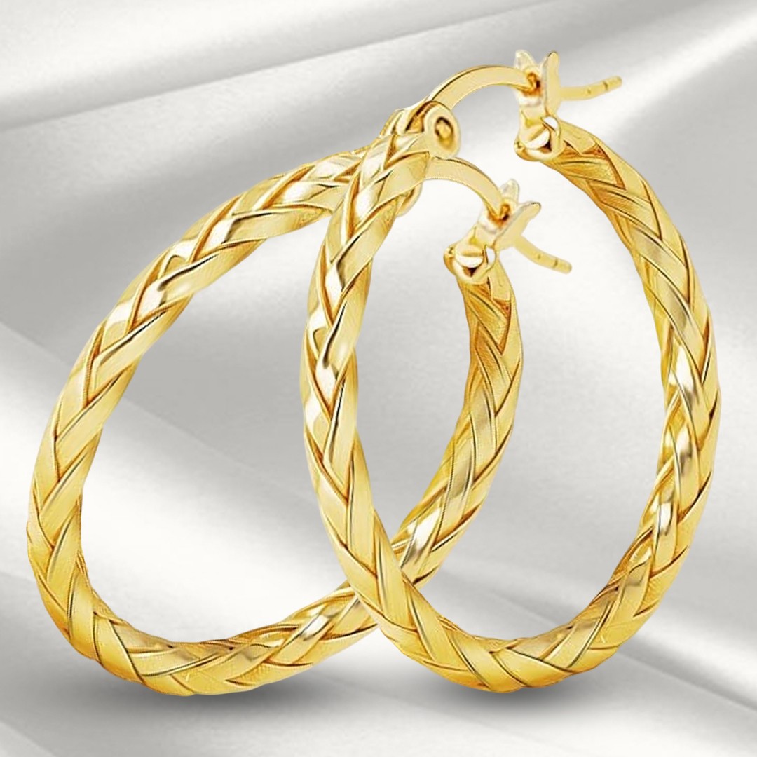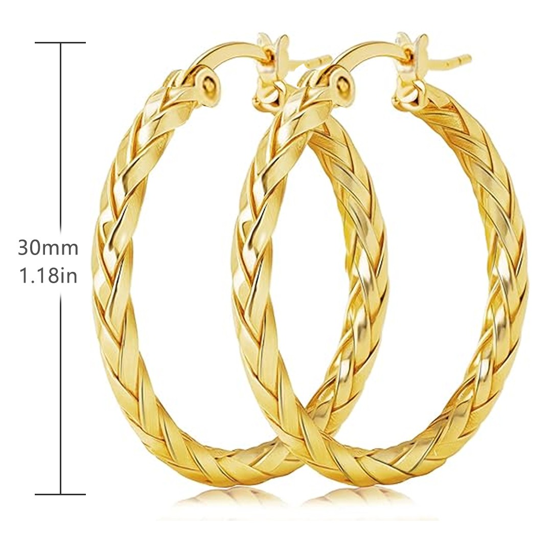 14K Gold Earrings for Women Weave Design Hoop Earrings Classic Earring 30MM