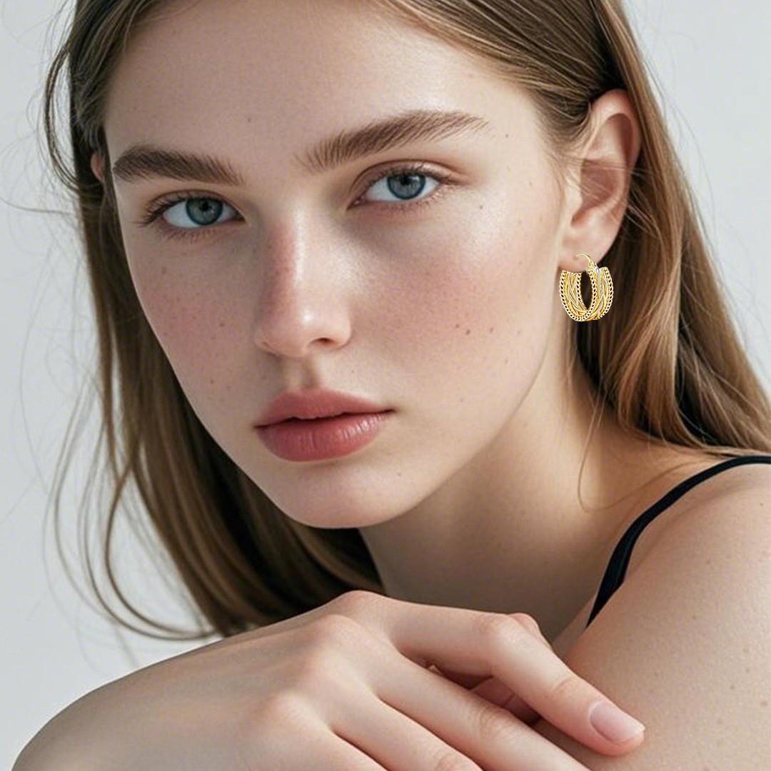 как выглядит 14K Gold Twisted Chunky Hoop Earrings 23mmx9mm Thick Unique Jewelry Women Gift фото