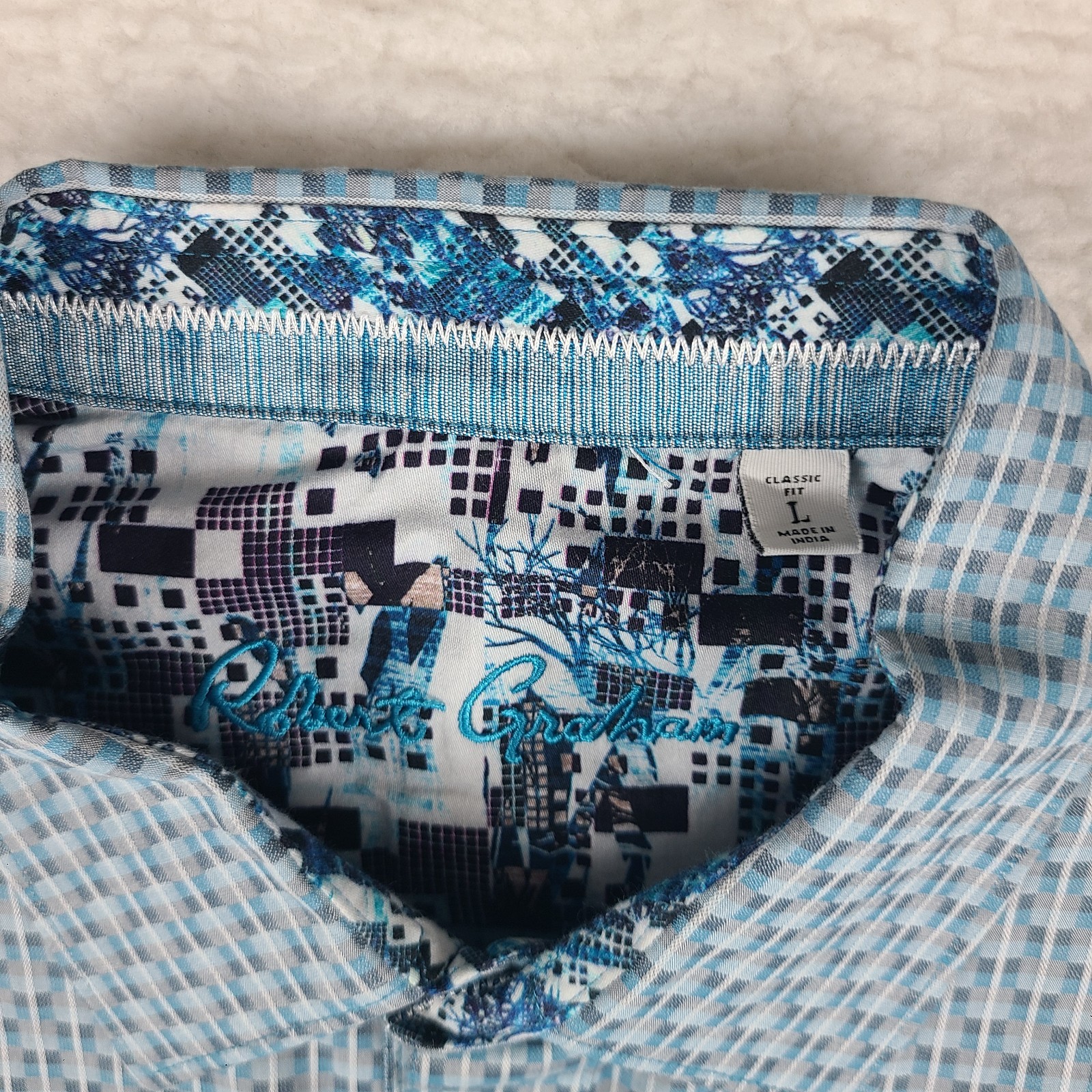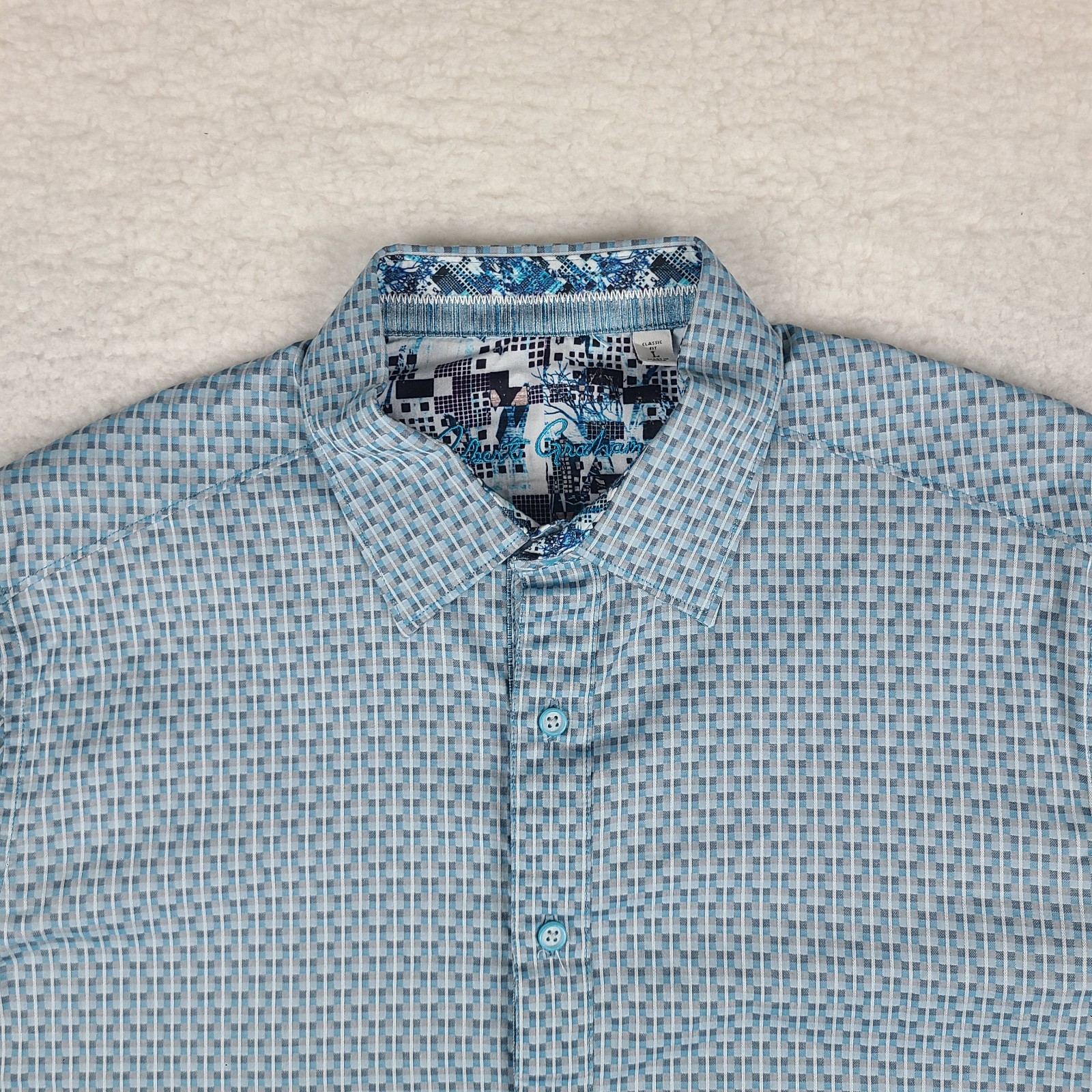 как выглядит Robert Graham Dress Shirt Mens Large Blue Teal Gray Classic Fit Button Up фото