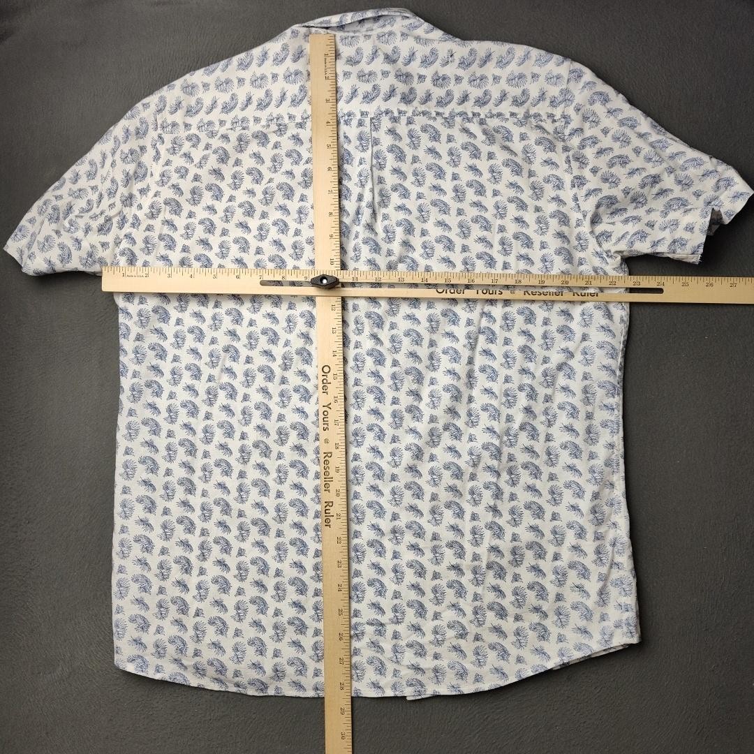 как выглядит Johnnie O Hangin Out Shirt Mens Medium White Blue Palm Print Short Sleeve Celo фото