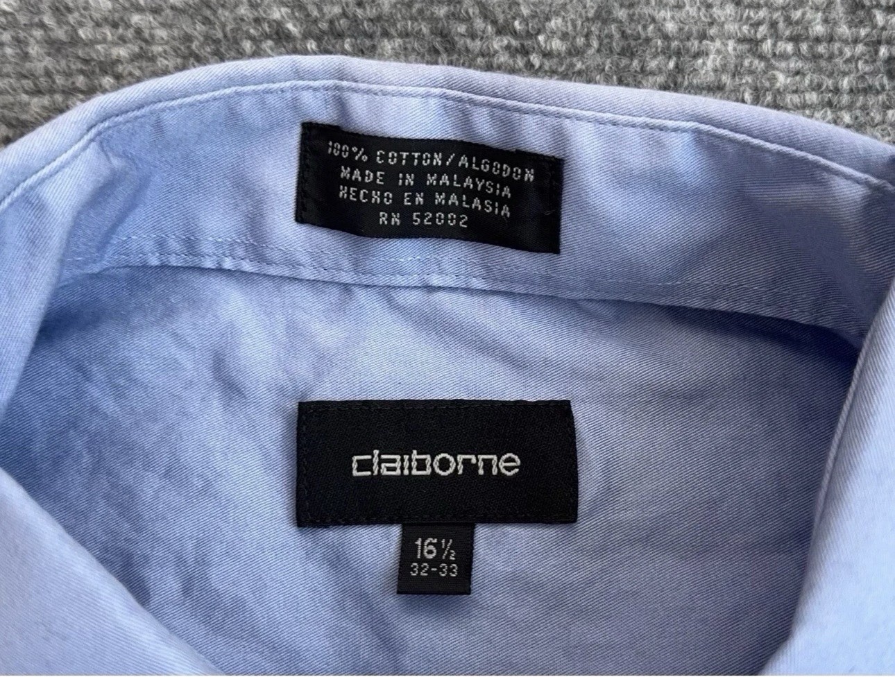 как выглядит Claiborne Shirt Men 16 1/2 32/33 Blue Dress Top Long Sleeve Button Down Collared фото