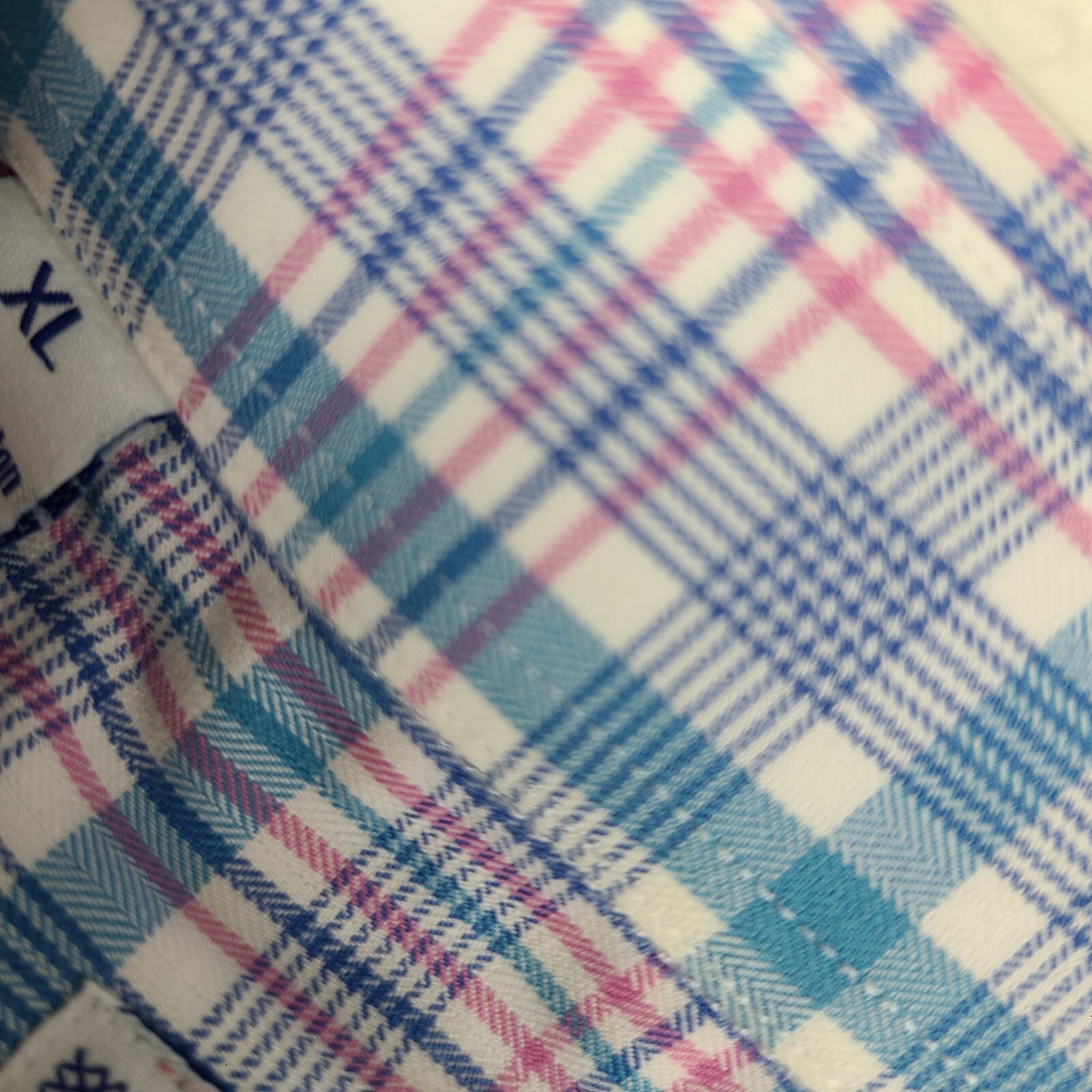 как выглядит David Donahue Shirt Mens XL Blue Purple Plaid 100 Cotton Dress Button Up фото