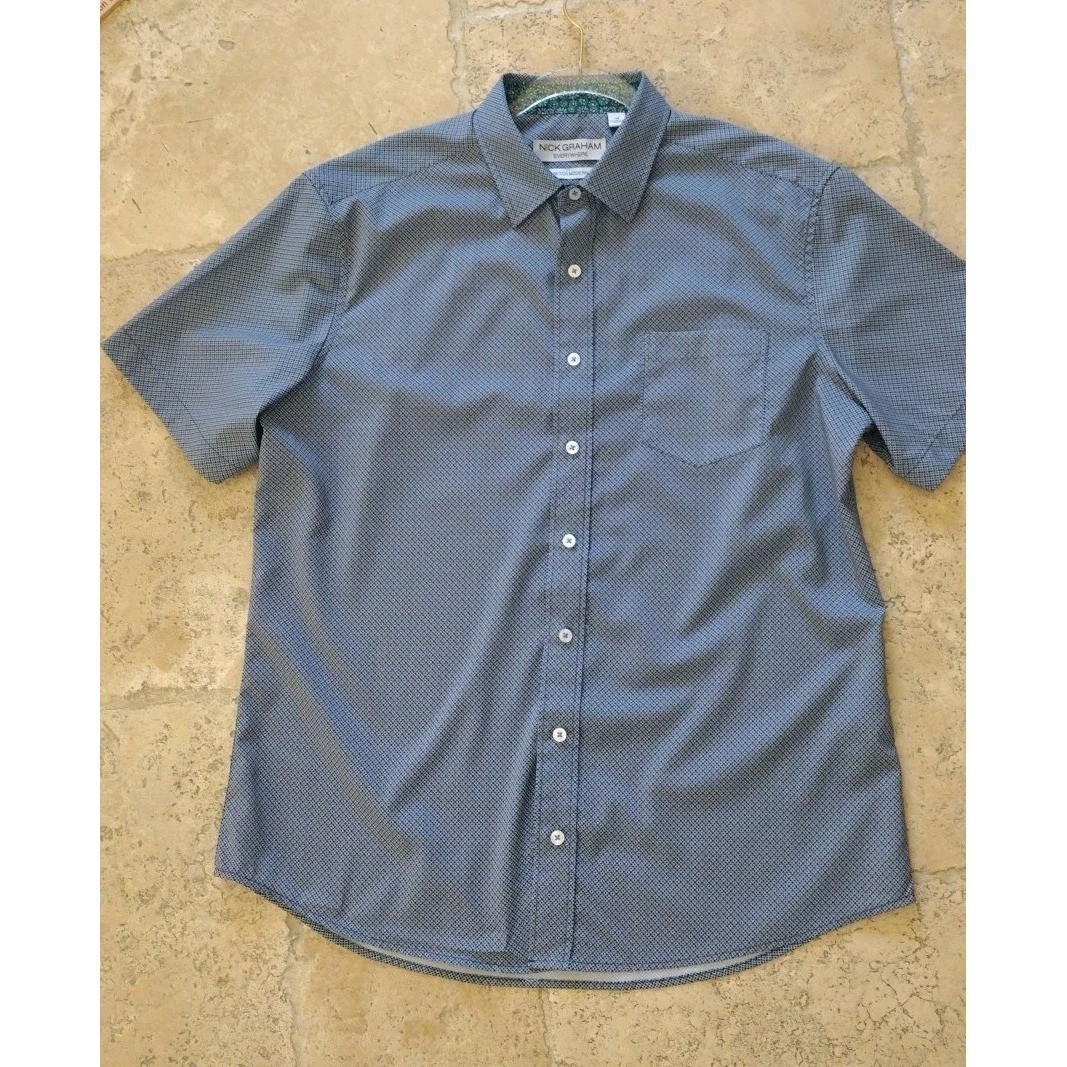 как выглядит Nick Graham Button Up Shirt Man L Blue Everywhere Stretch Modern Fit Short Slvs фото