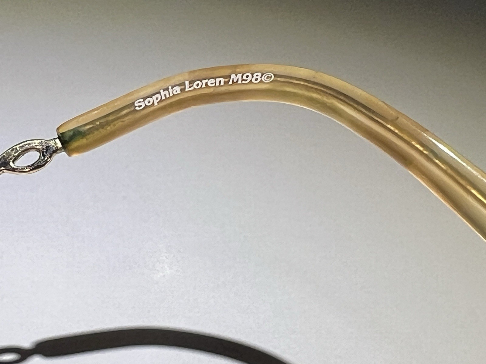 как выглядит Vintage Sophia Loren Eyeglass Frames M98 Gold Tone Oval Frame Squiggle Arms VTG фото