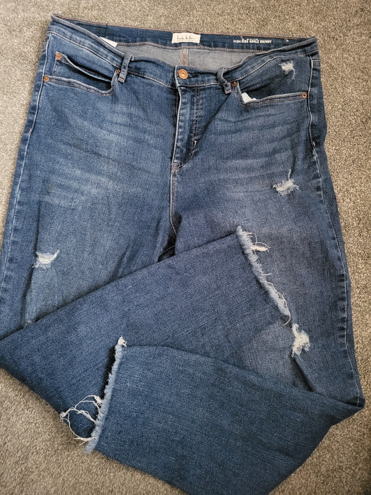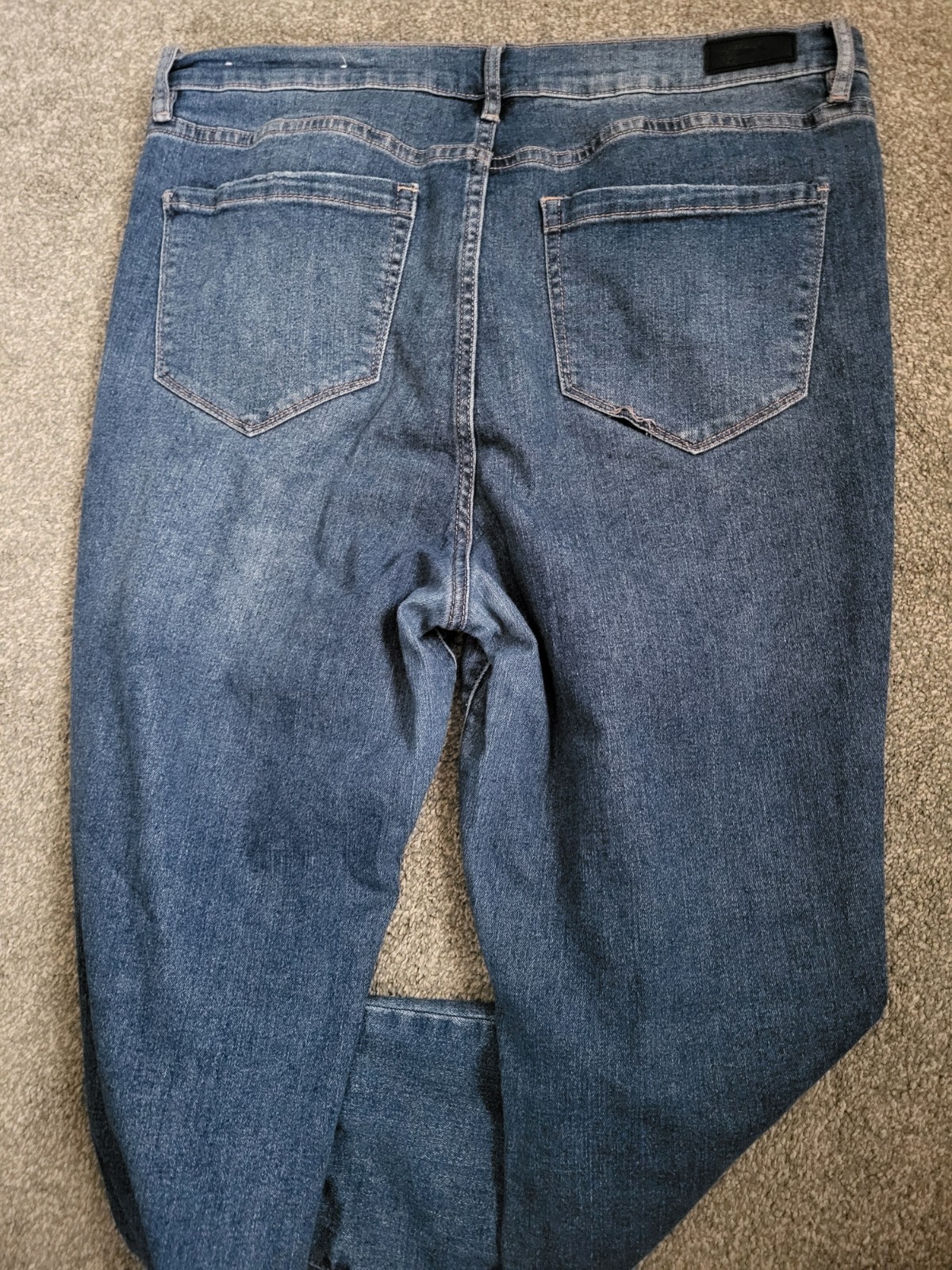 Women's Nicole Miller Soho High Rise Skinny Crop Destructed Blue Jeans Size 12