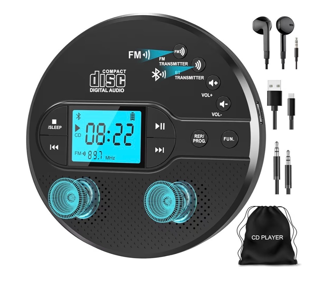 Portable CD Player with Bluetooth, Discman CD Player for Car with FM Transmitter