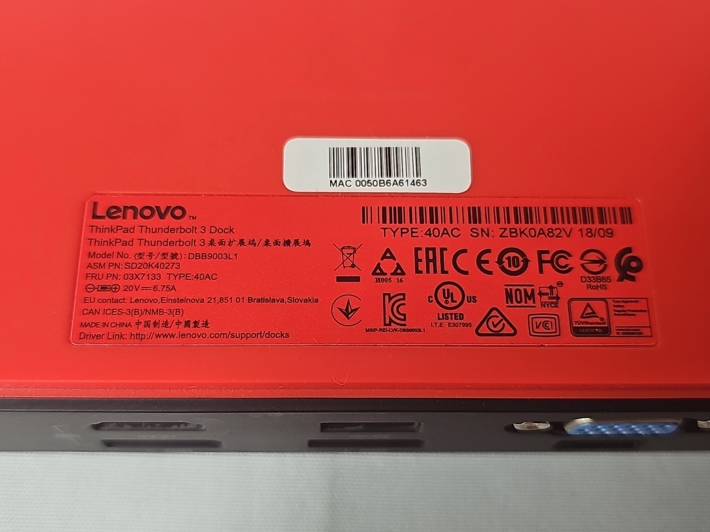Lenovo ThinkPad Thunderbolt 3 Docking Station Type 40AC DBB9003L1 NO CORD