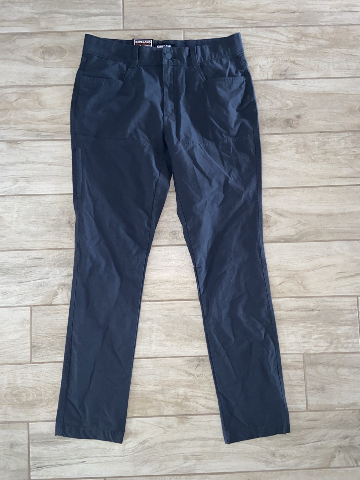 Kirkland Signature Mens Tech Travel Stretch Chino Pants Blue Gray 34 x 34 New