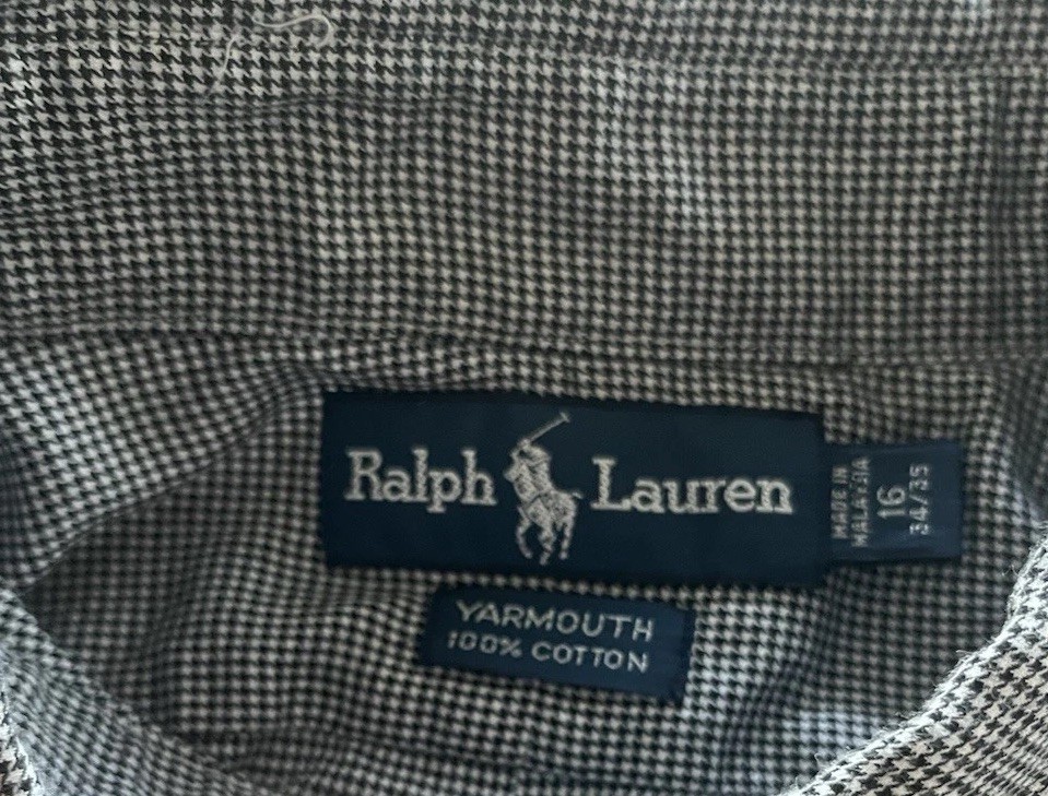 как выглядит Ralph Lauren Yarmouth Gray Black Gingham Check Button Down Sleeve Sz 16 34/35 фото
