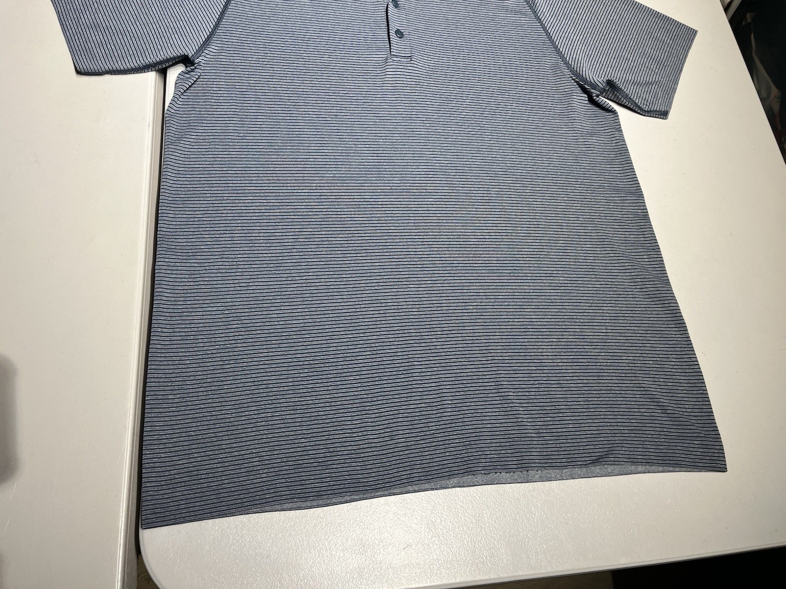как выглядит Lululemon Polo Shirt Mens Large Blue Striped Evolution Metal Vent Golf Casual фото