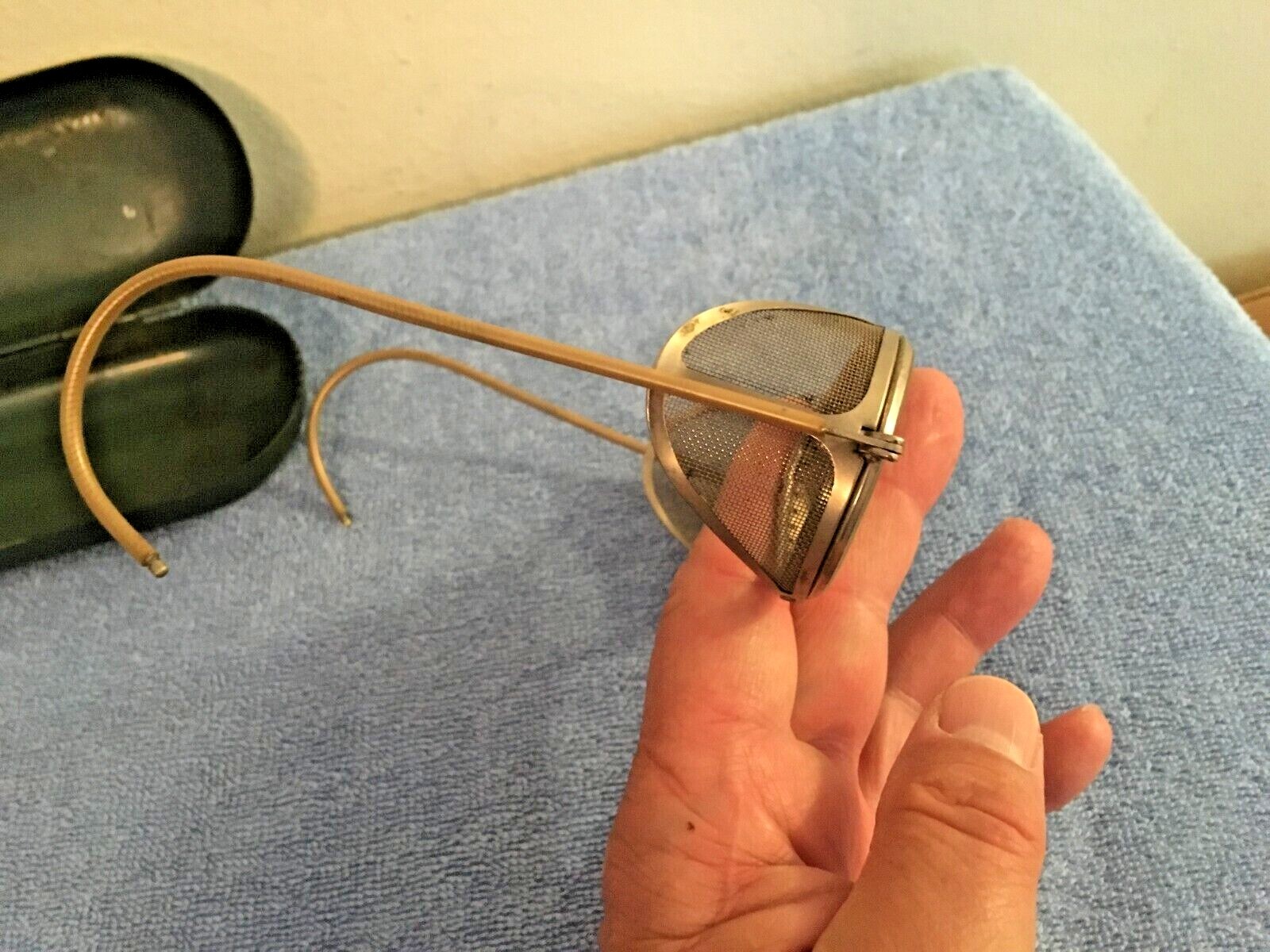 как выглядит VINTAGE W GLASS FOLDING SAFETY GLASSES WIRE SCREEN STEAMPUNK MOTORCYCLE AVIATOR фото