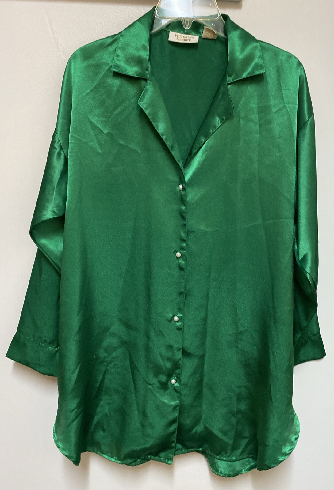 Vintage Victoria's Secret Gold Label Sleep Shirt Night Gown Green Satin Small
