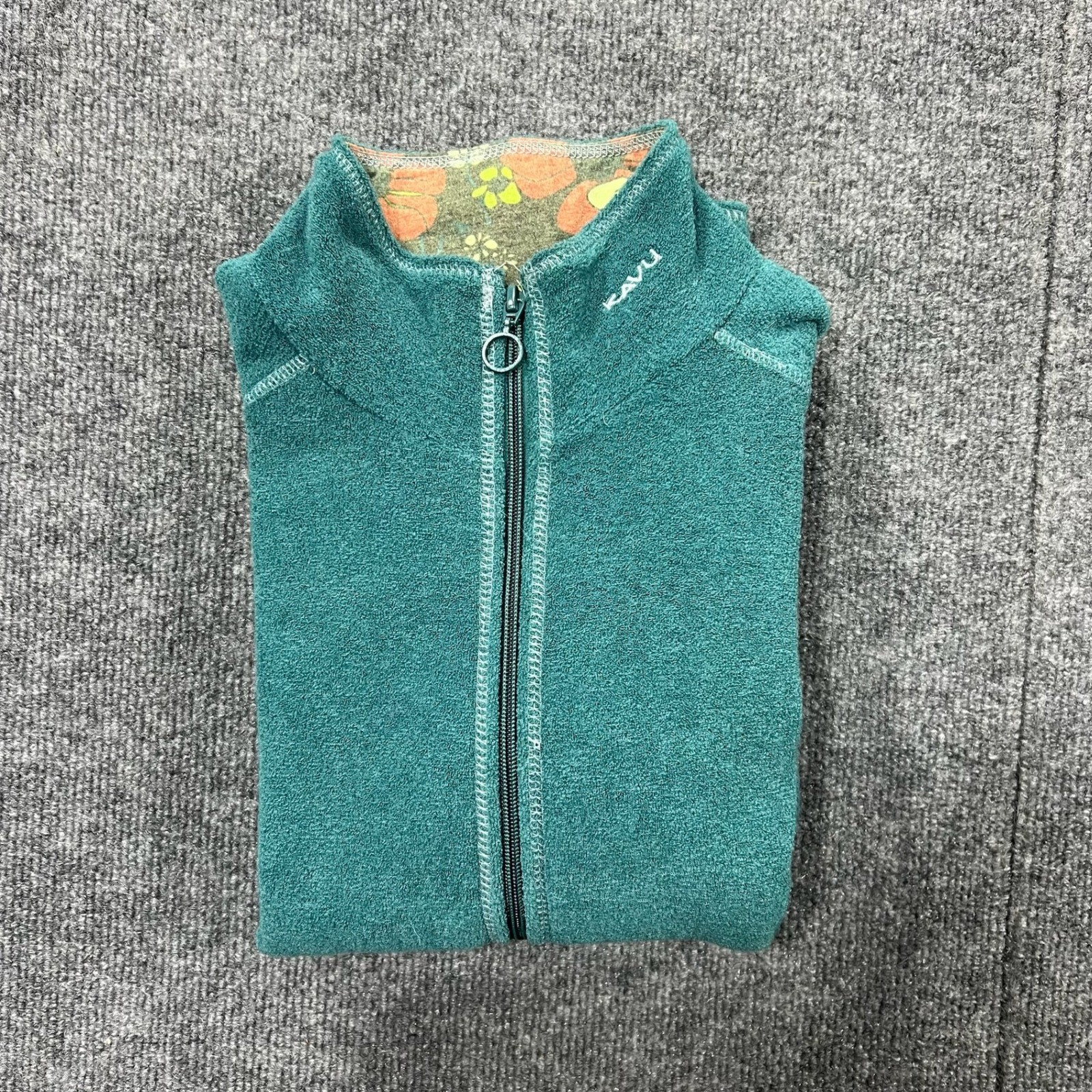 как выглядит Kavu Teal Fleece Jacket Womens X-Small Floral Trim Pockets Gorpcore Full Zip фото