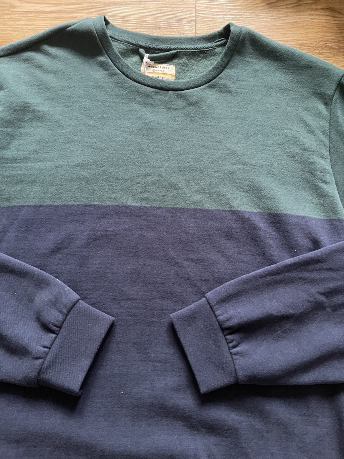 как выглядит MARINE LAYER MEN S STRIPE SLEEVE SWEATSHIRT COLORBLOCK XL NEW NWT фото