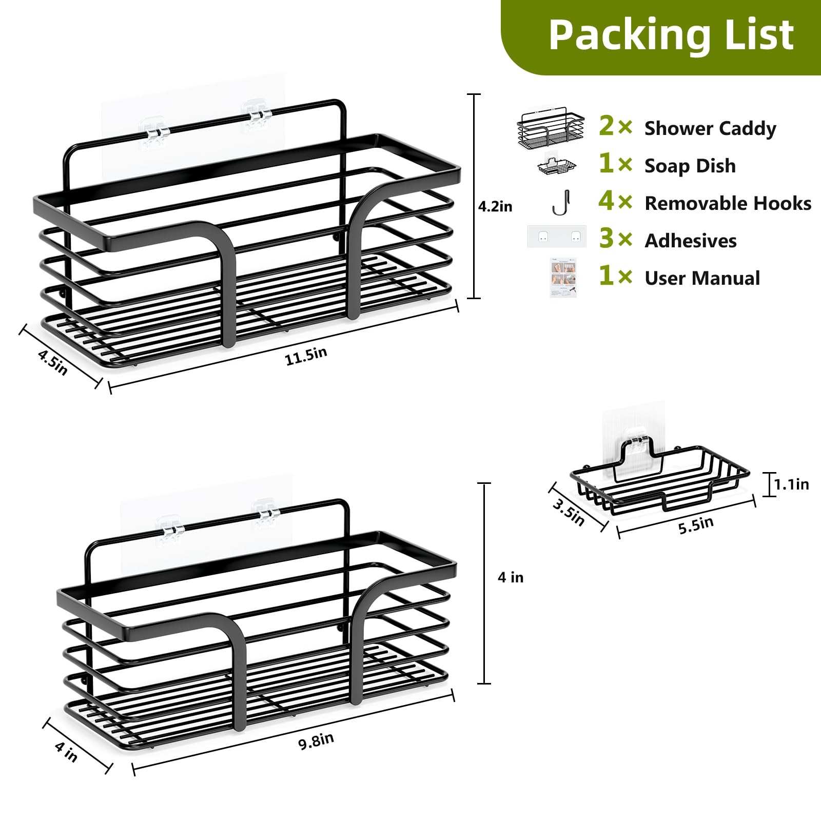 Included Components: 2 X Shower Shelves, 1 X Soap Holder