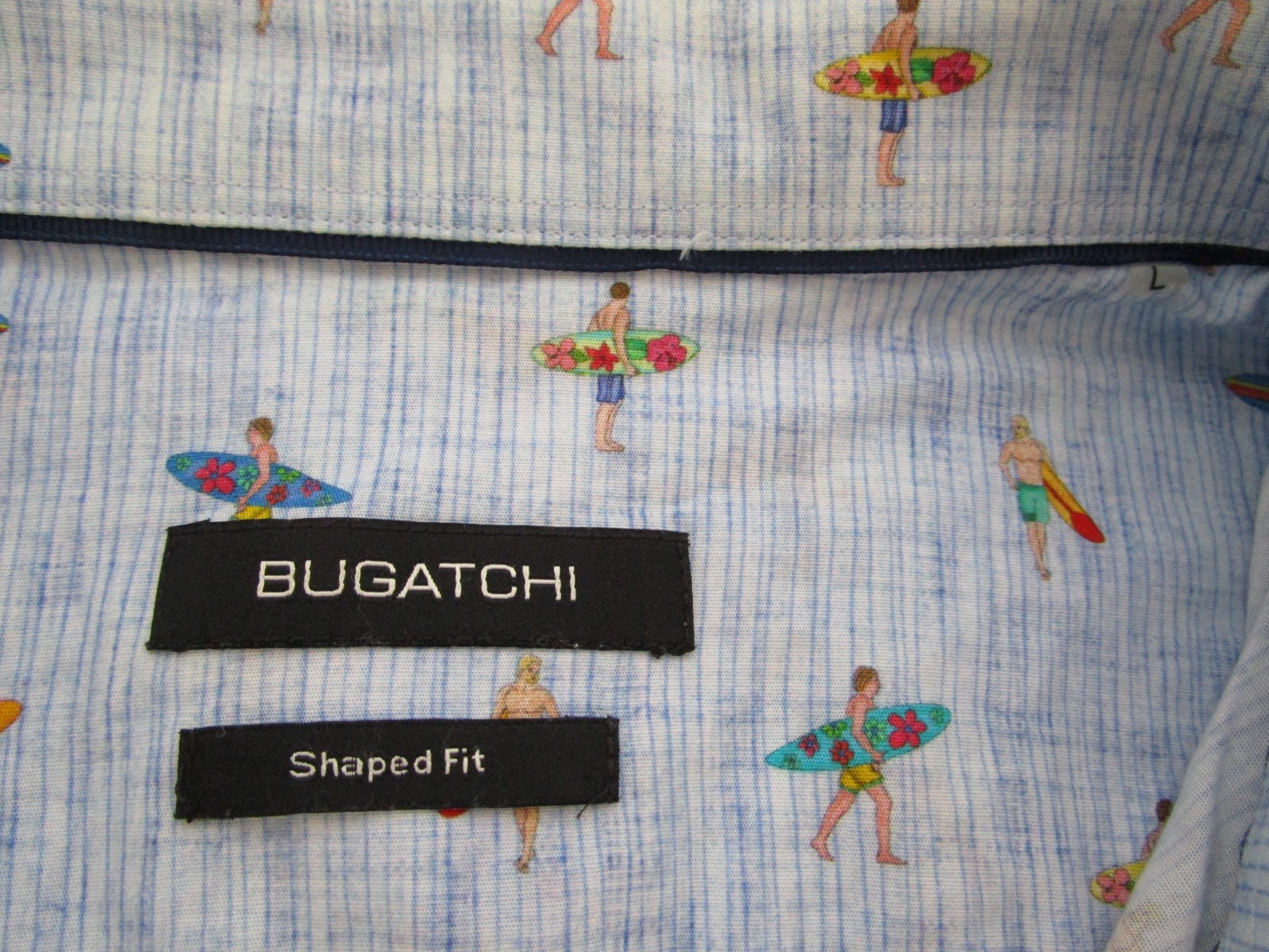 Mens Large Bugatchi Shaped Fit LS button shirt surf blue