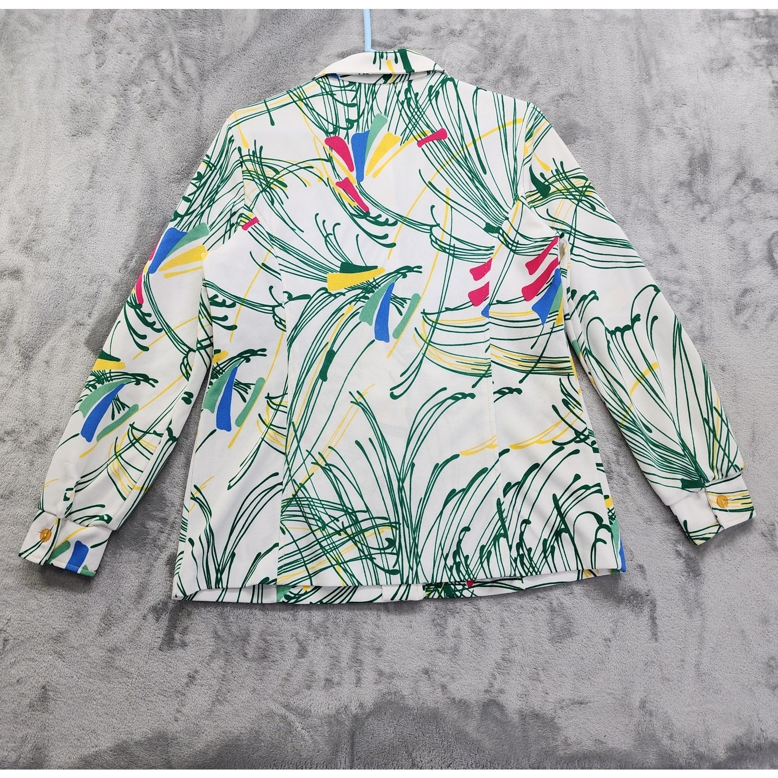 Vintage 70s Floral Polyester Sleeveless Top Button Front Jacket Twinset Size M