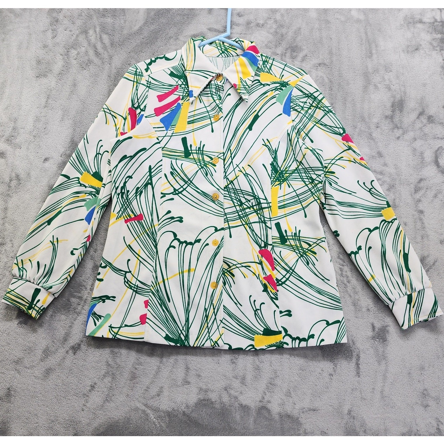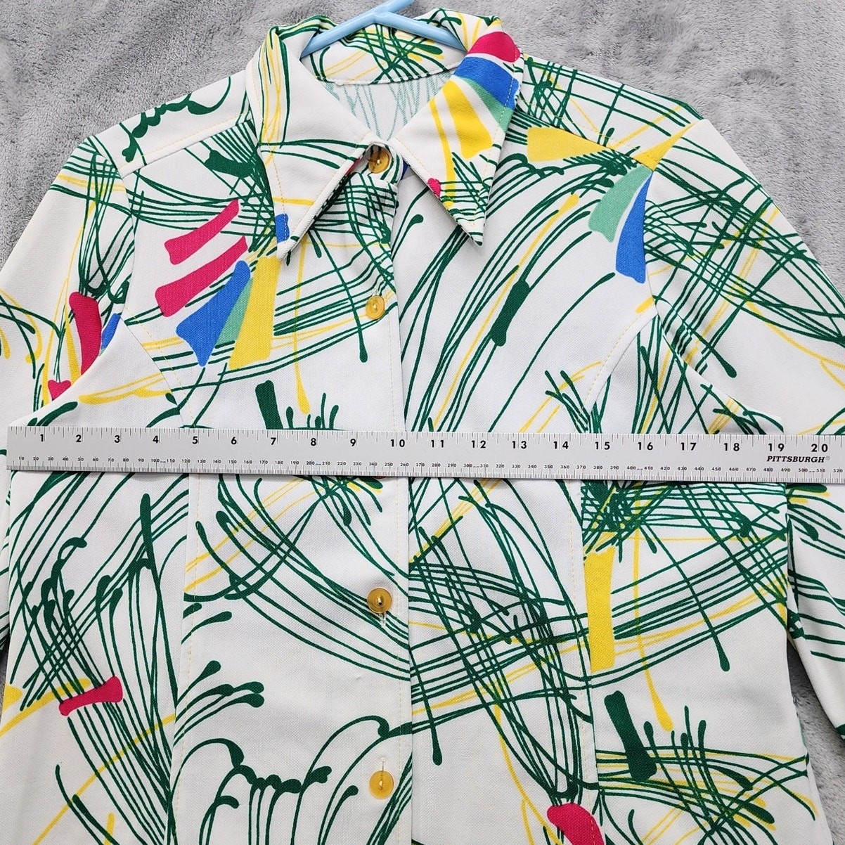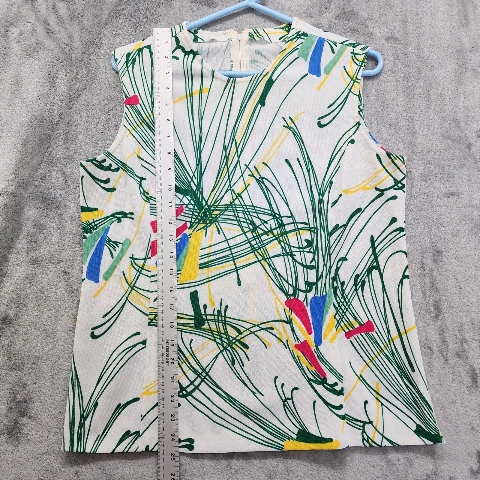 как выглядит Vintage 70s Floral Polyester Sleeveless Top Button Front Jacket Twinset Size M фото