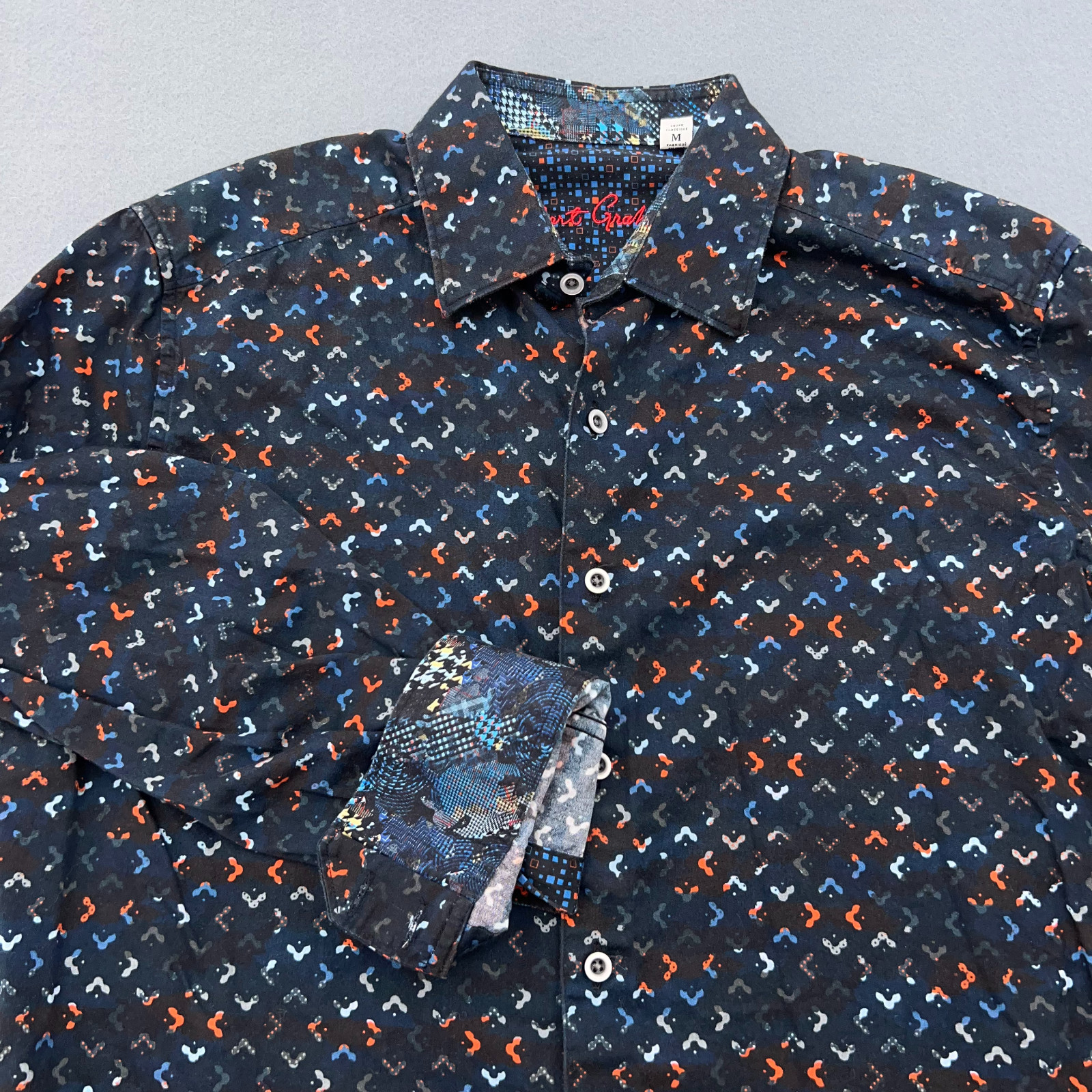 как выглядит Robert Graham Mens MEDIUM Flip Cuff Classic Fit Long Sleeve Button Black фото