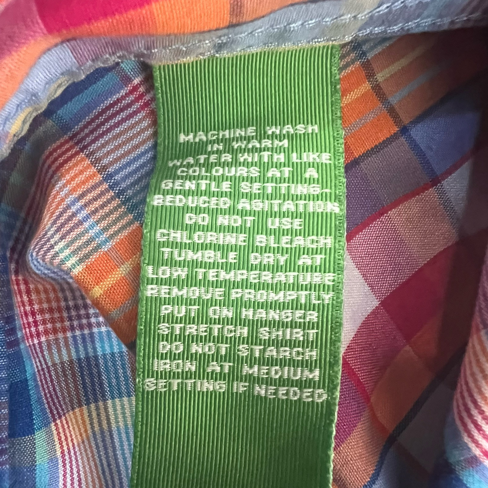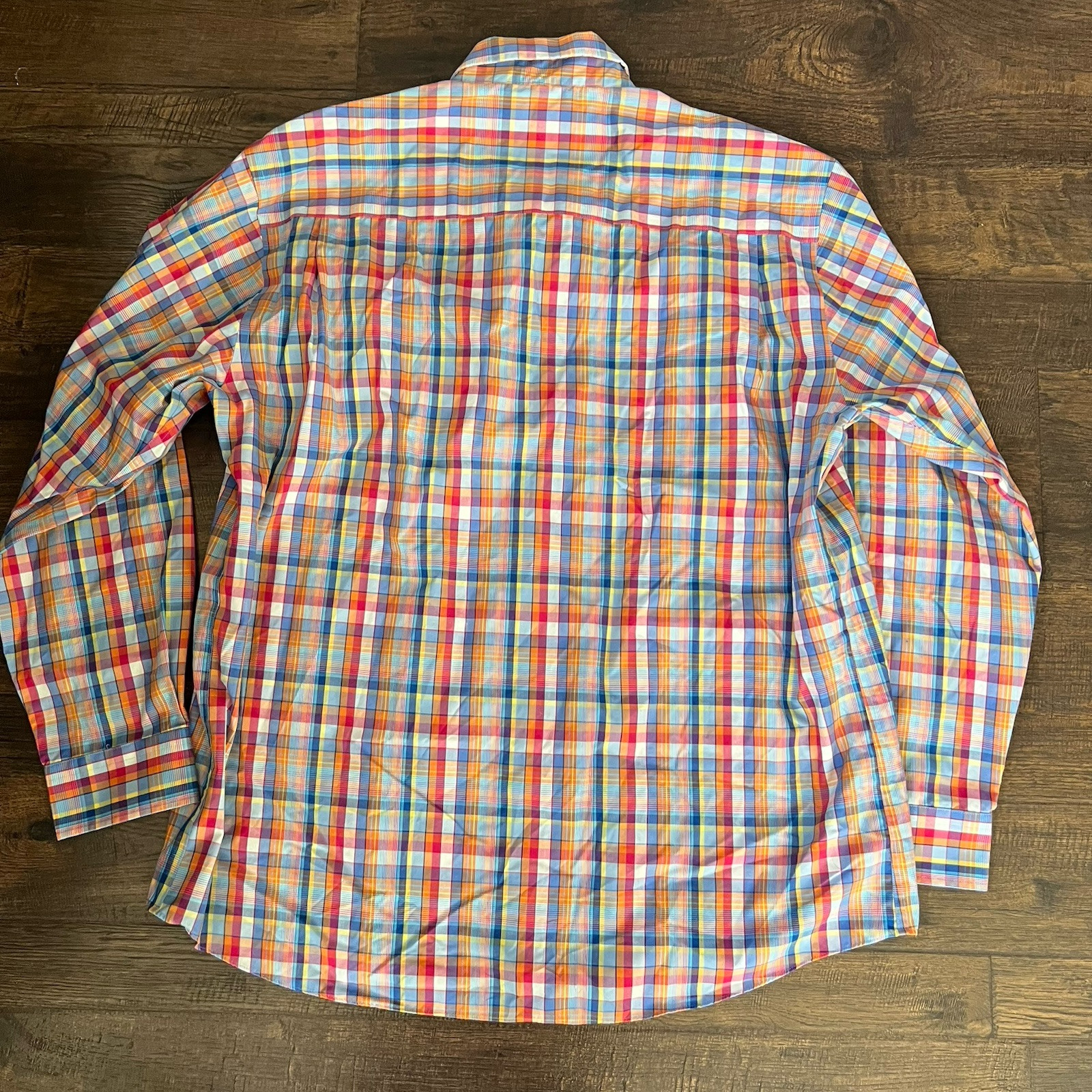 как выглядит Mens Forsyth of Canada Non Iron Plaid Long Sleeve Button Up Shirt XL Orange Blue фото