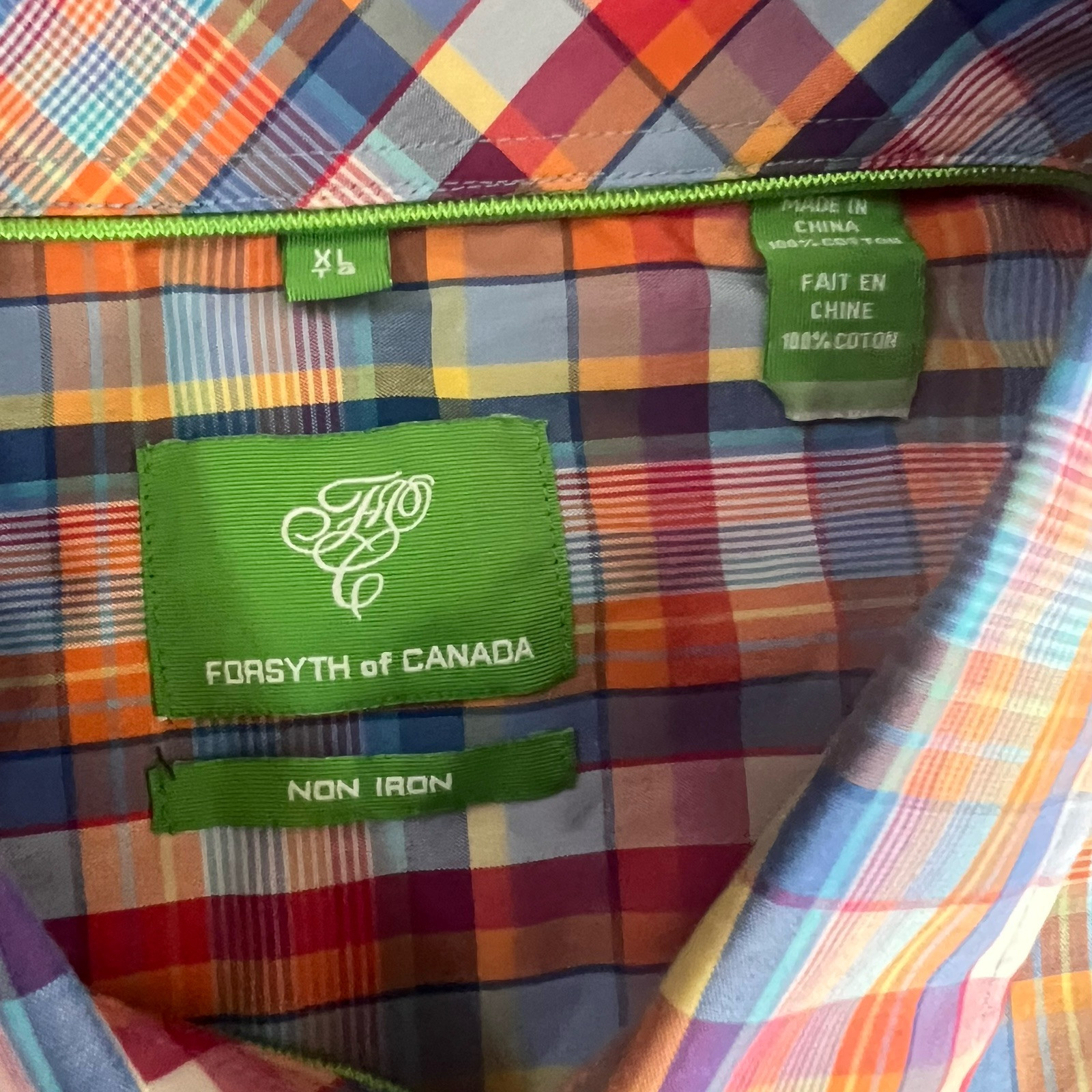 Mens Forsyth of Canada Non Iron Plaid Long Sleeve Button Up Shirt XL Orange Blue