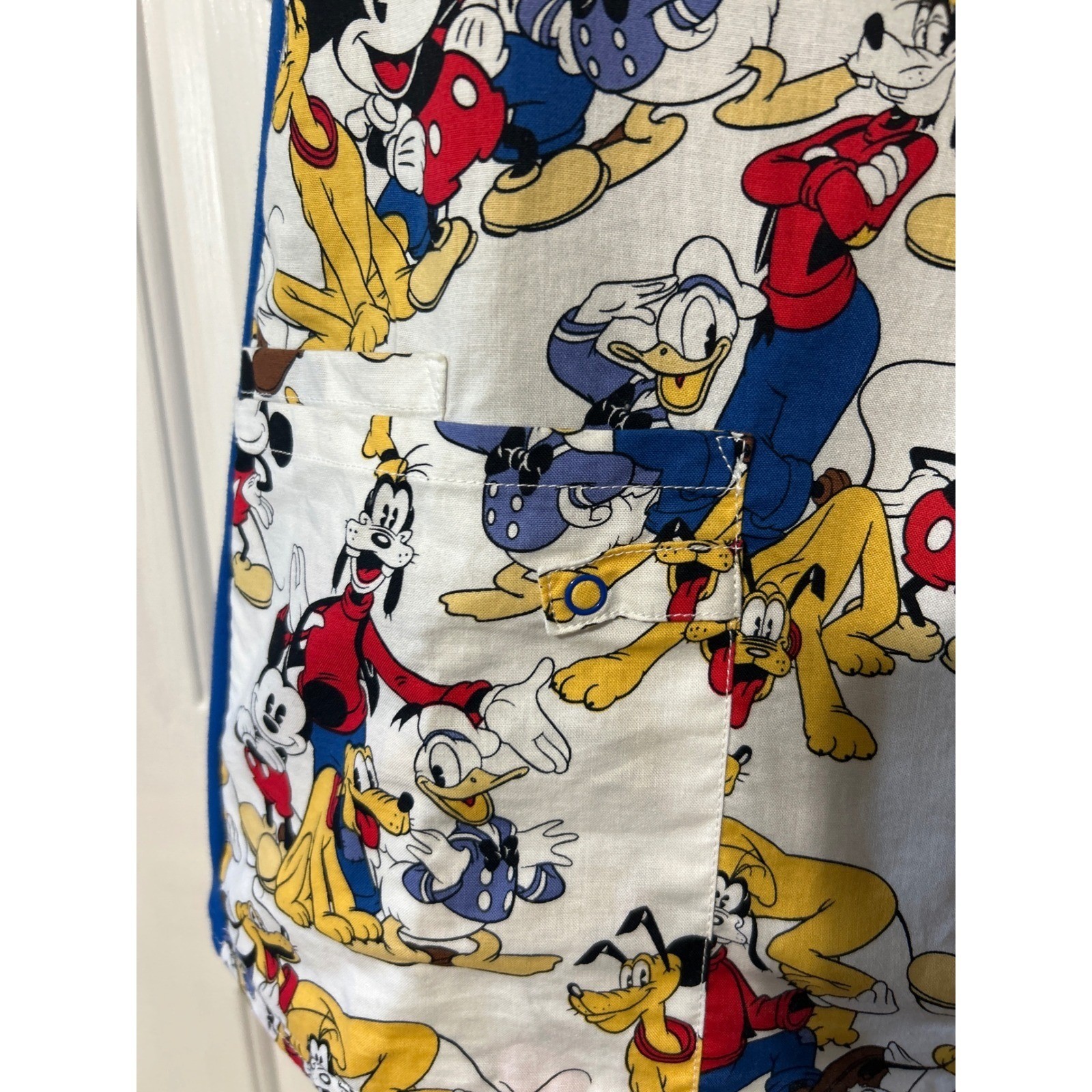 Disney Mickey Mouse Goofy Donald Duck Print Scrub Top Medical Uniform
