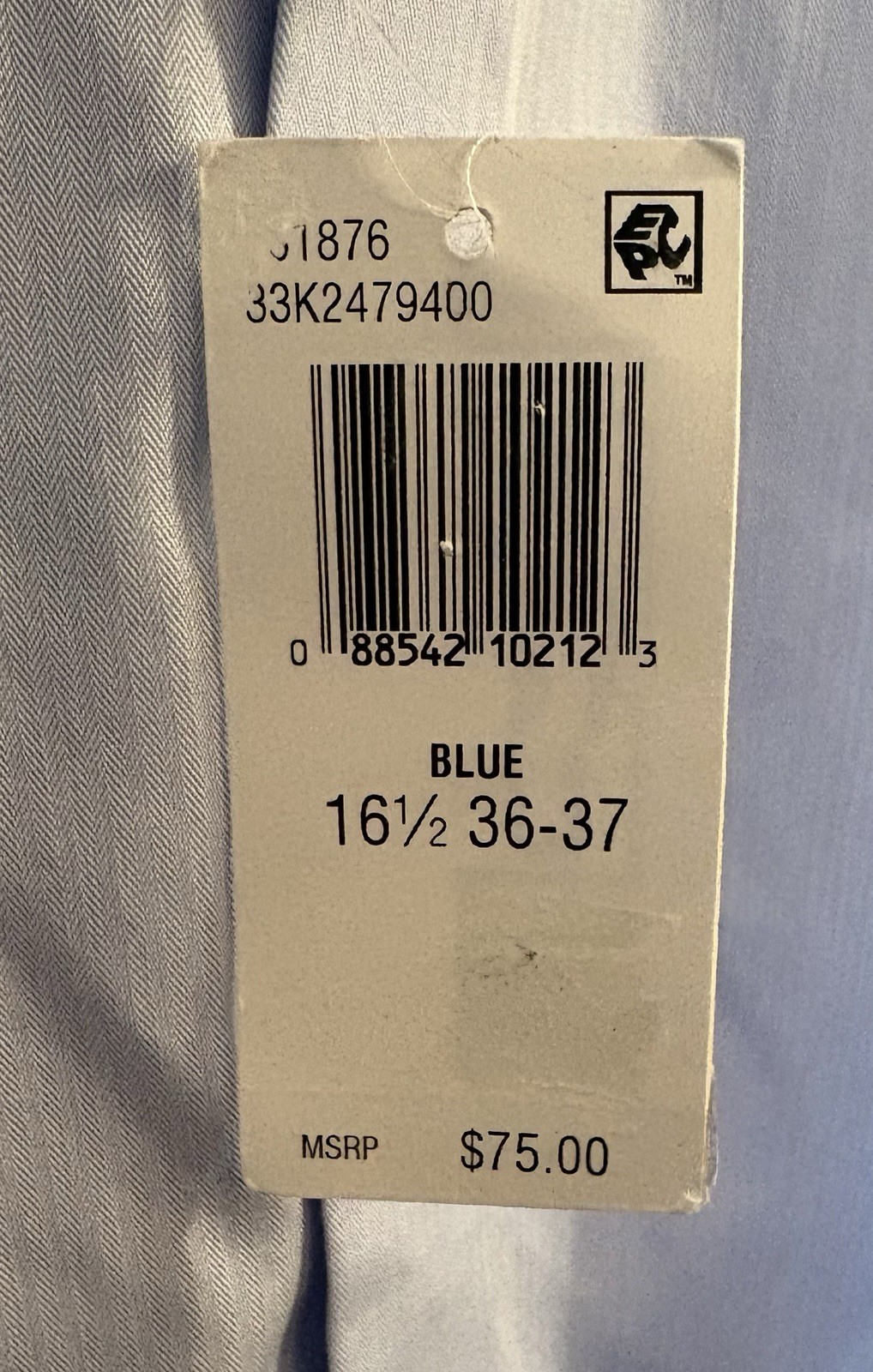 как выглядит Calvin Klein Steel Slim-Fit Non-Iron Herringbone Dress Shirt, Blue, 16.5/36-37 фото