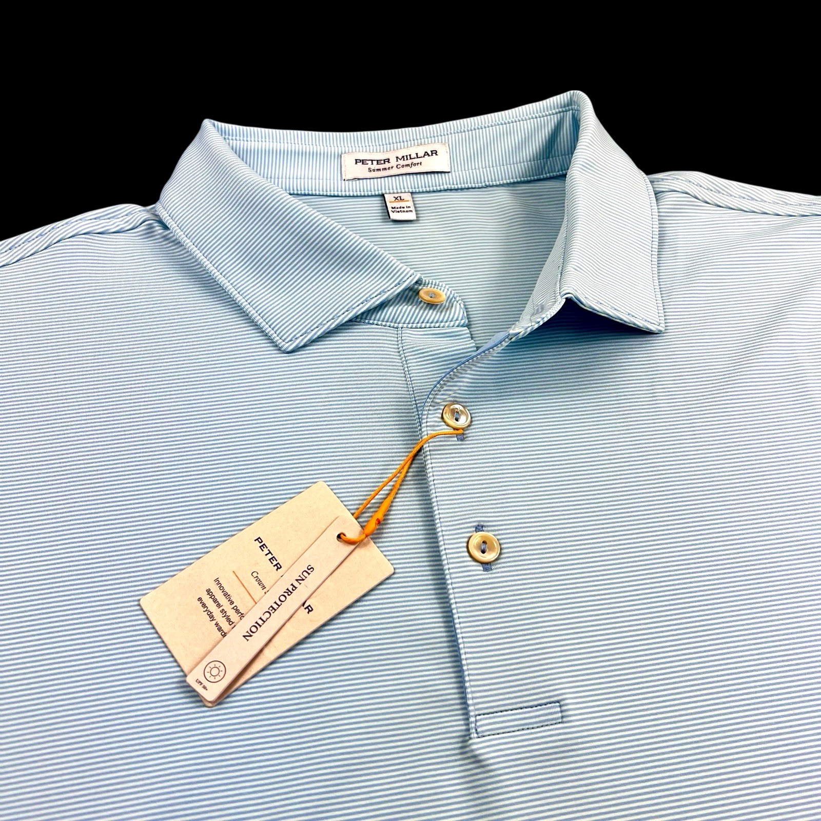 Peter Millar Crown Summer Comfort Performance Stripe Polo Shirt XL Blue Lavender