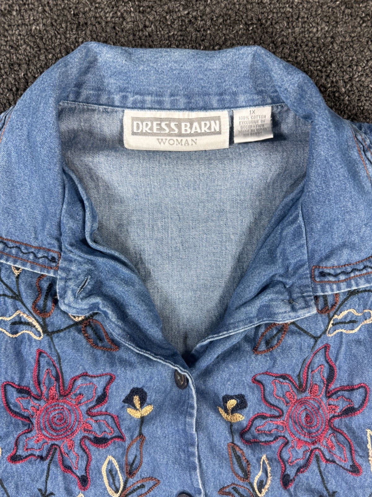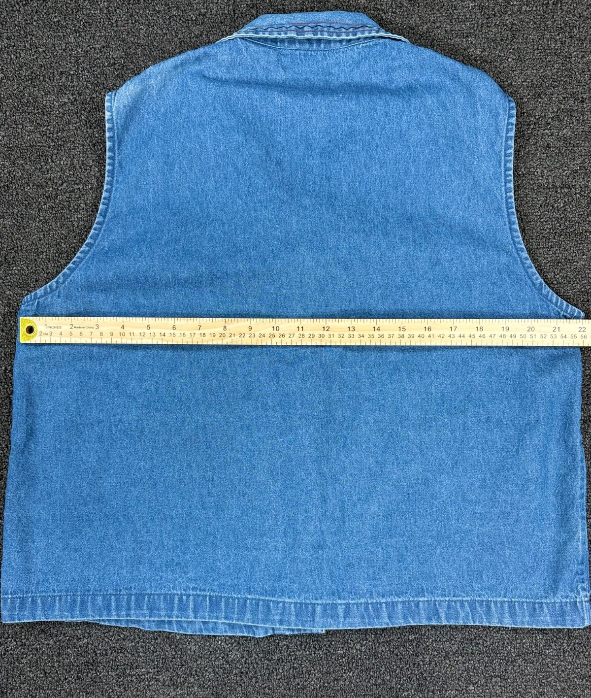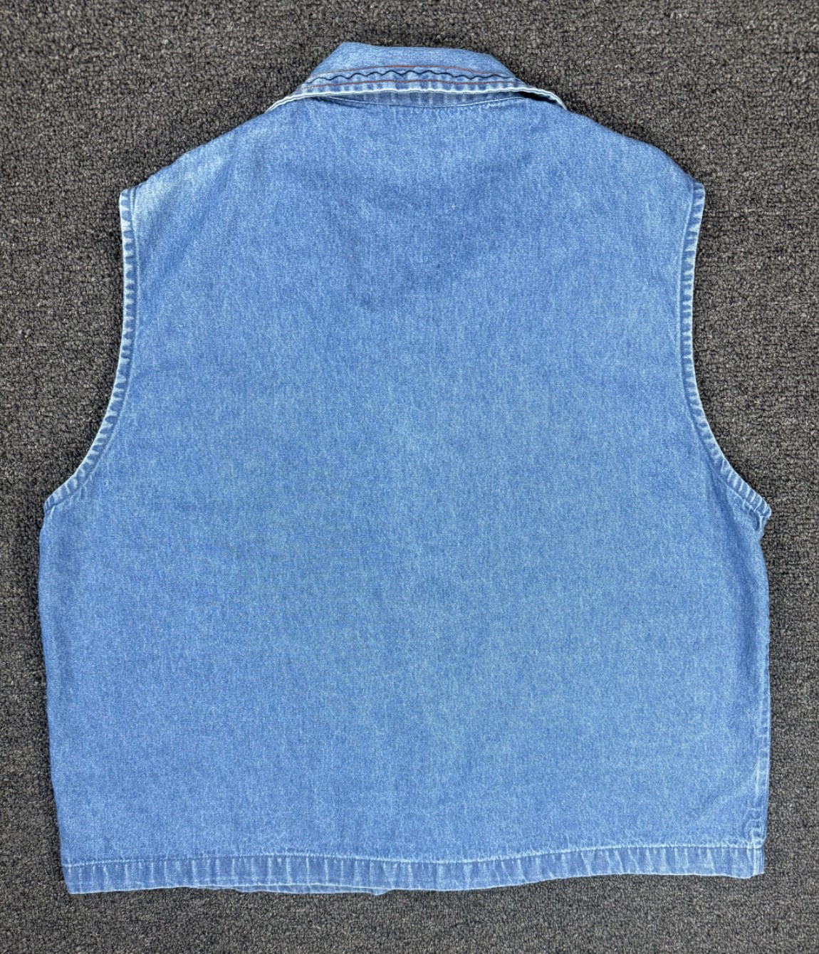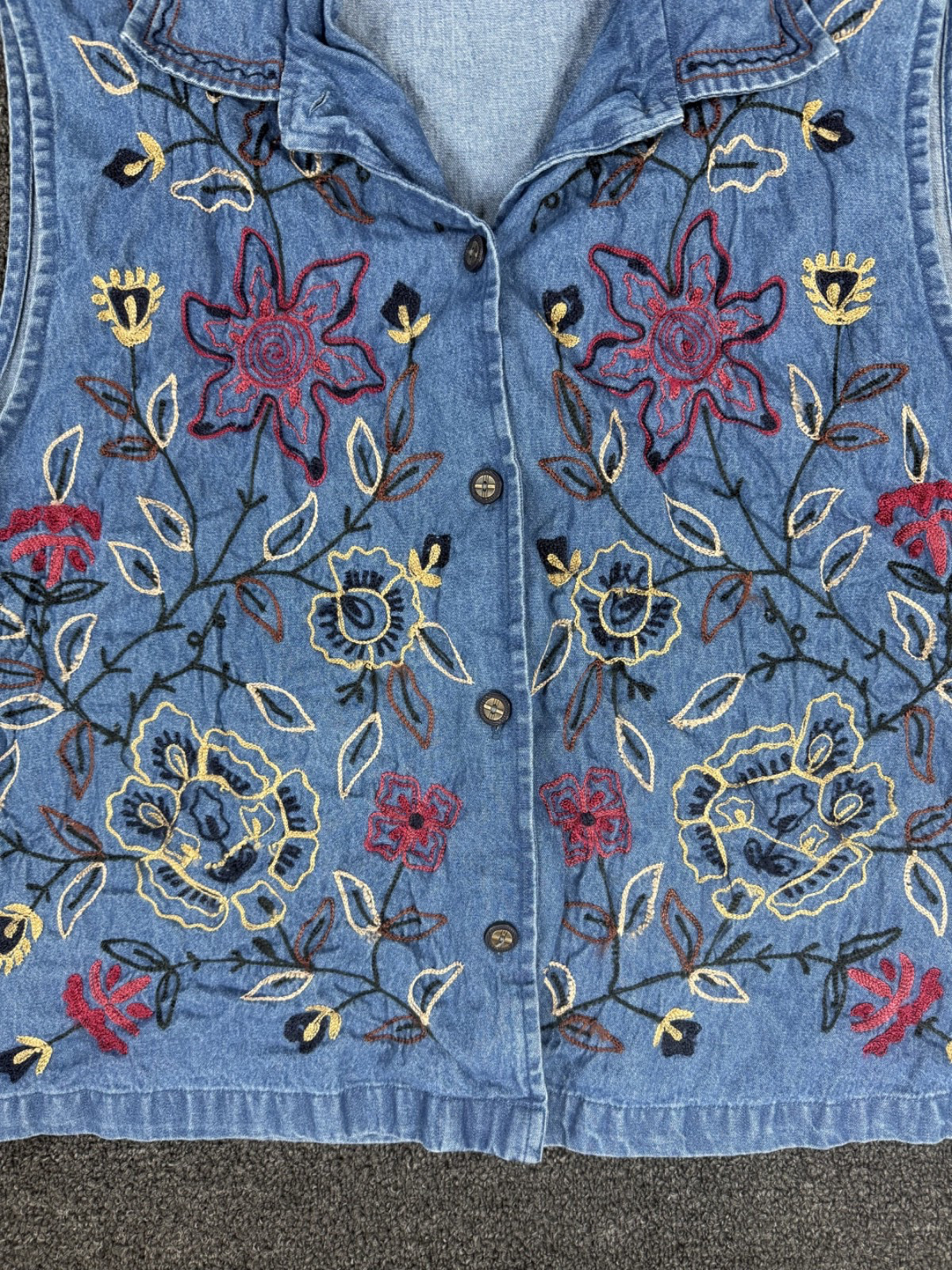 Y2K Embroidered Denim Vest Floral Boho Western Indie Button Front Top