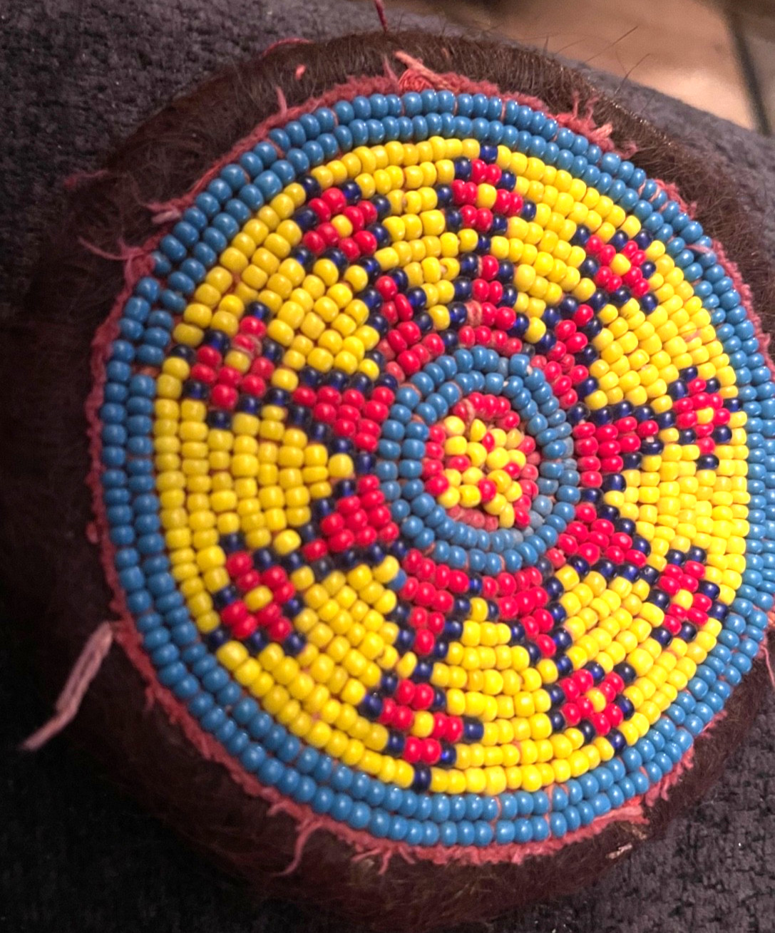 • Native American Seed Beaded Hand Stitched Tribal Medallion Rosette Patch