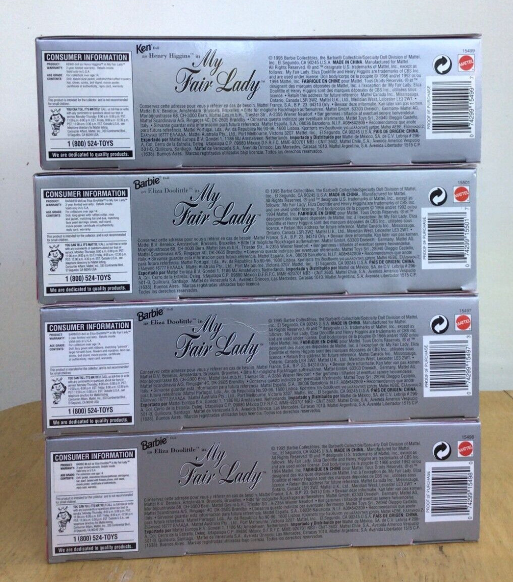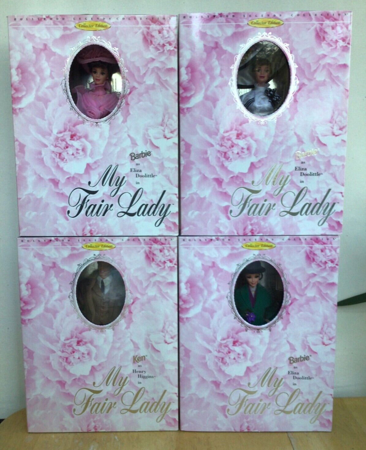 Set of 4 MY FAIR LADY BARBIES Pink, Flower, Ascot, Ken 1996 New and MIB