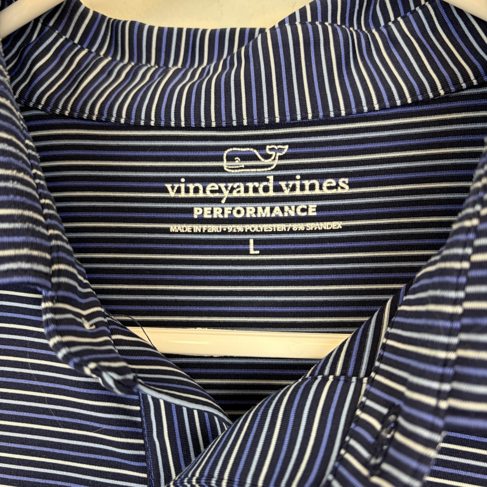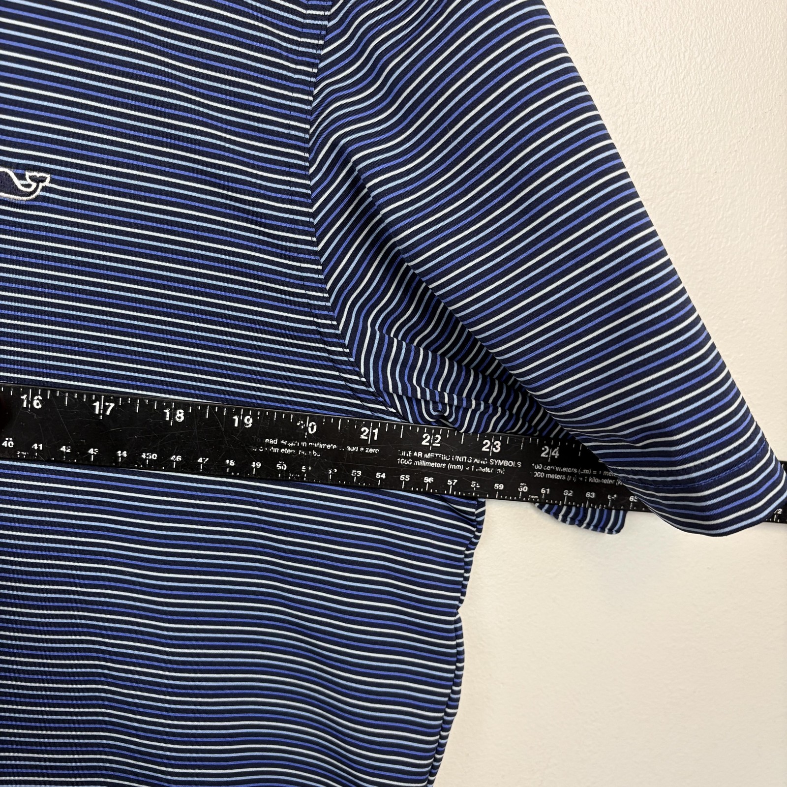 Vineyard Vines Polo Shirt Mens Large Blue Striped Performance Golf Tech Stretch