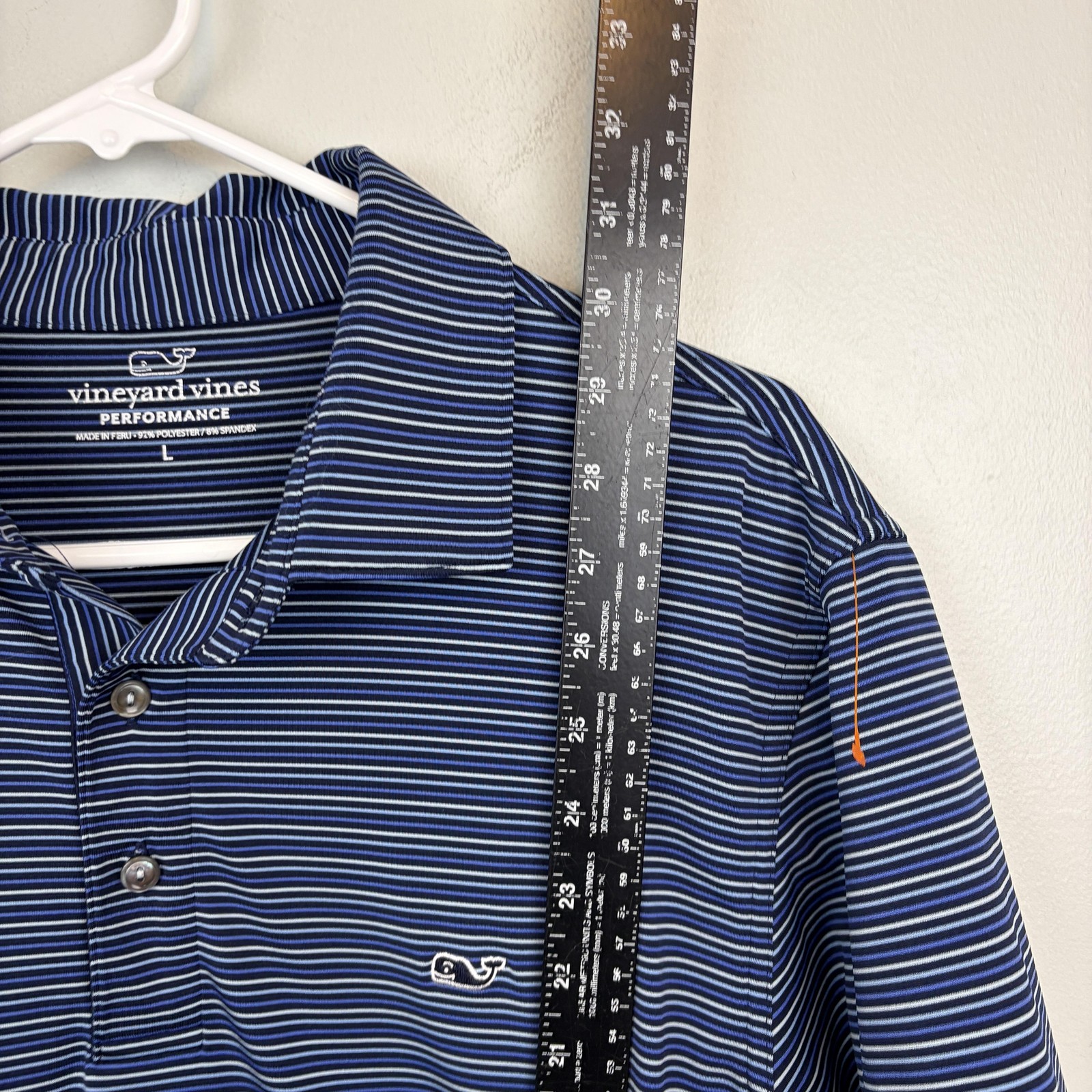 как выглядит Vineyard Vines Polo Shirt Mens Large Blue Striped Performance Golf Tech Stretch фото