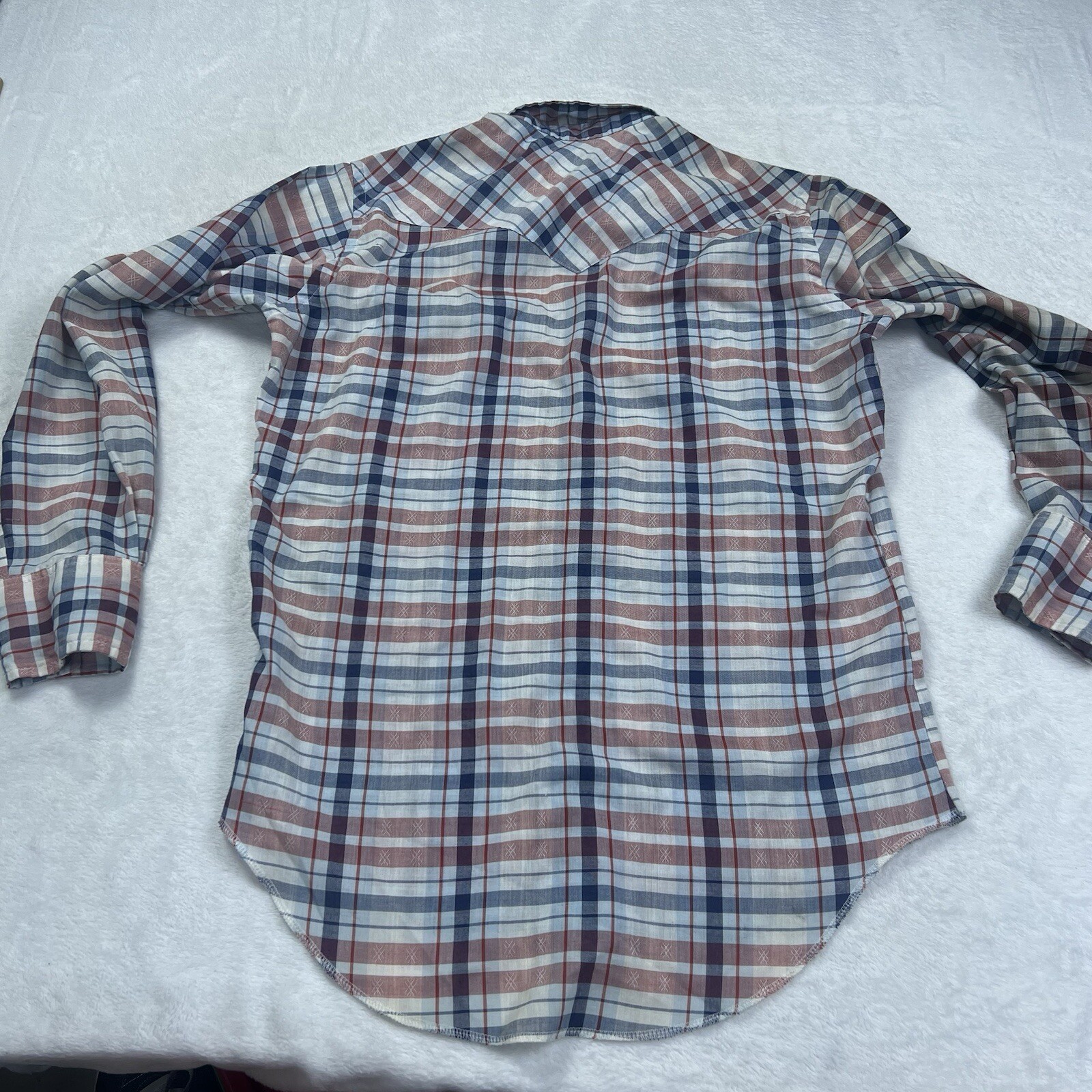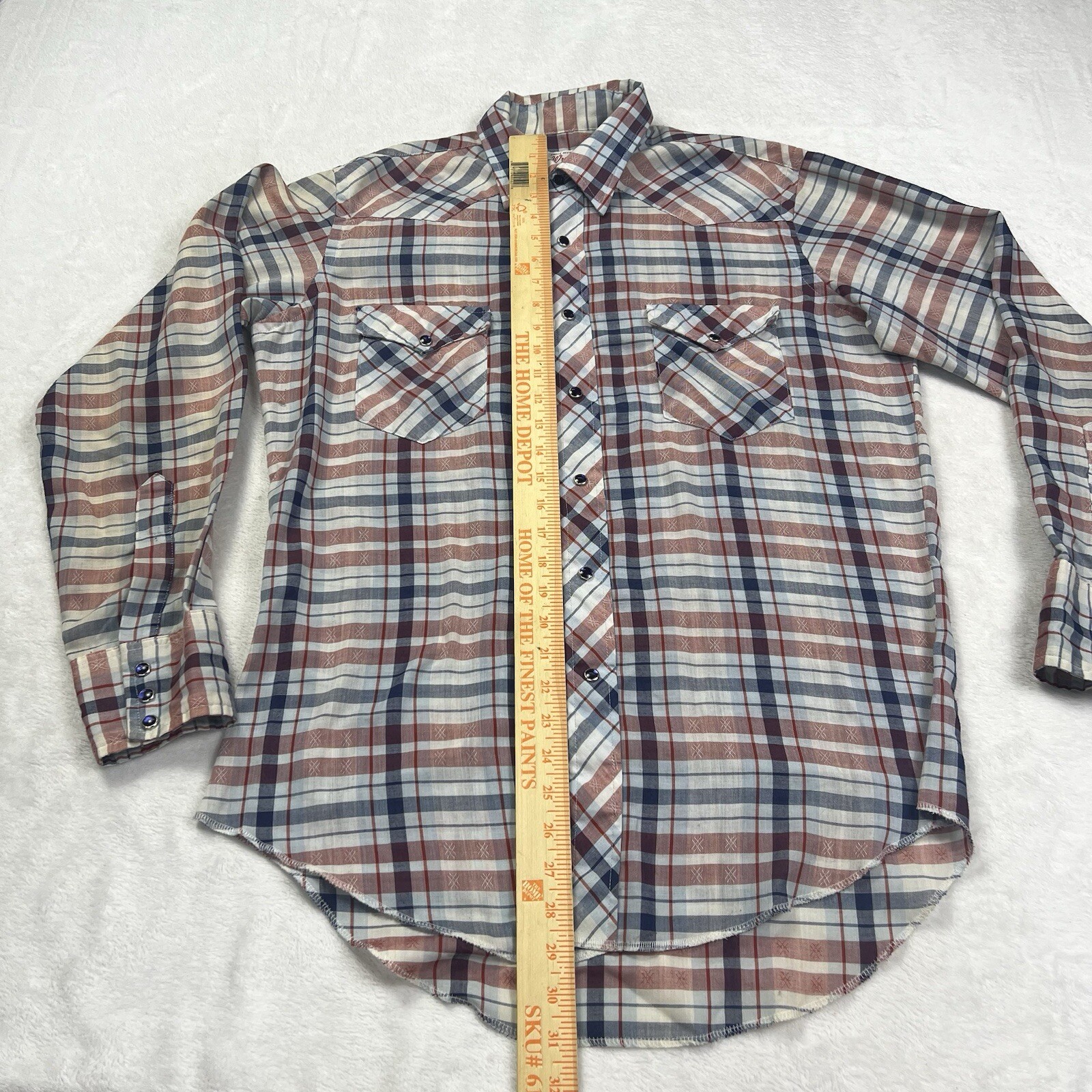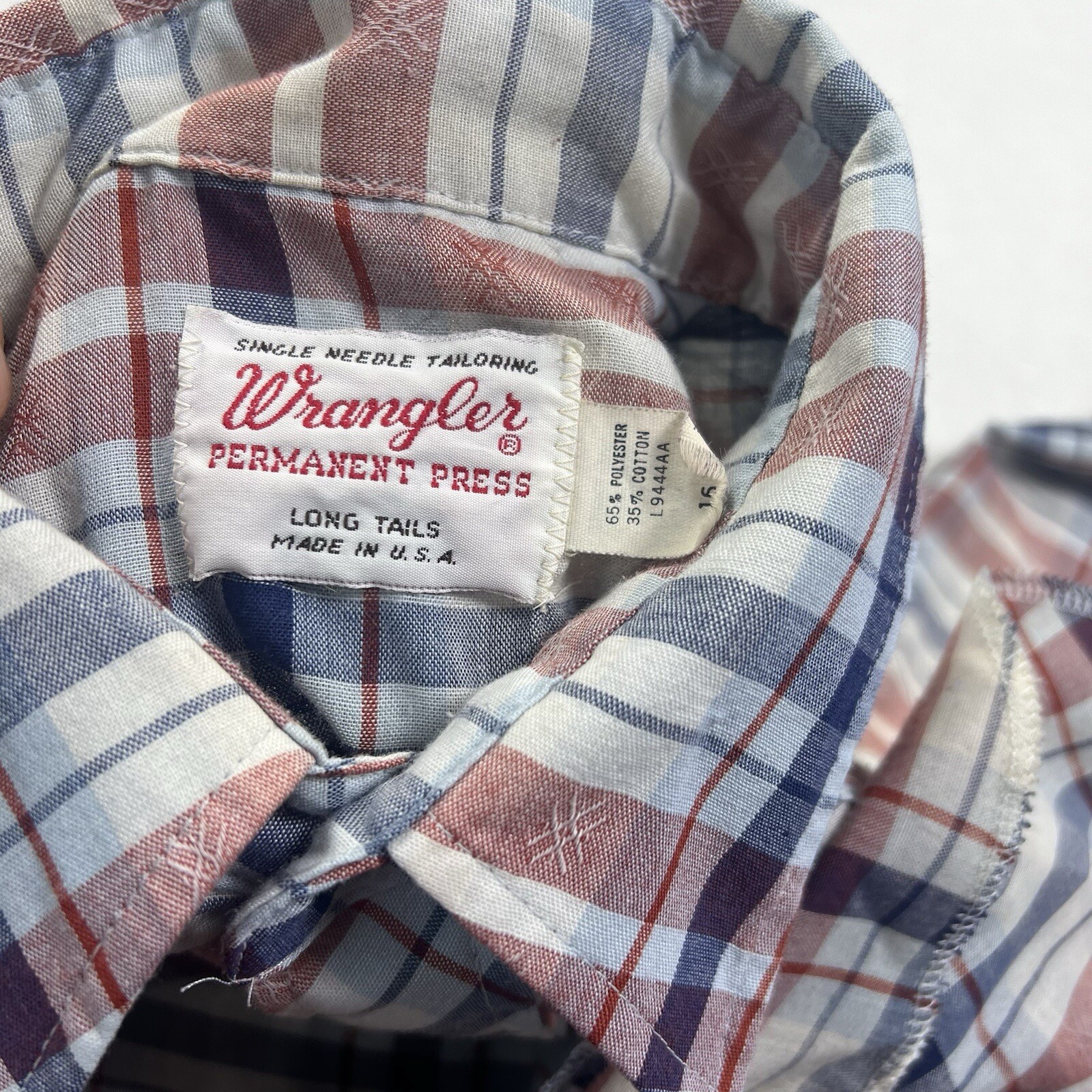 как выглядит Vintage 70s Wrangler Pearl Snap Shirt Permanent Press Long Tail Made USA фото