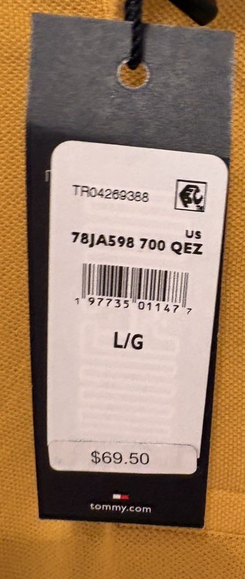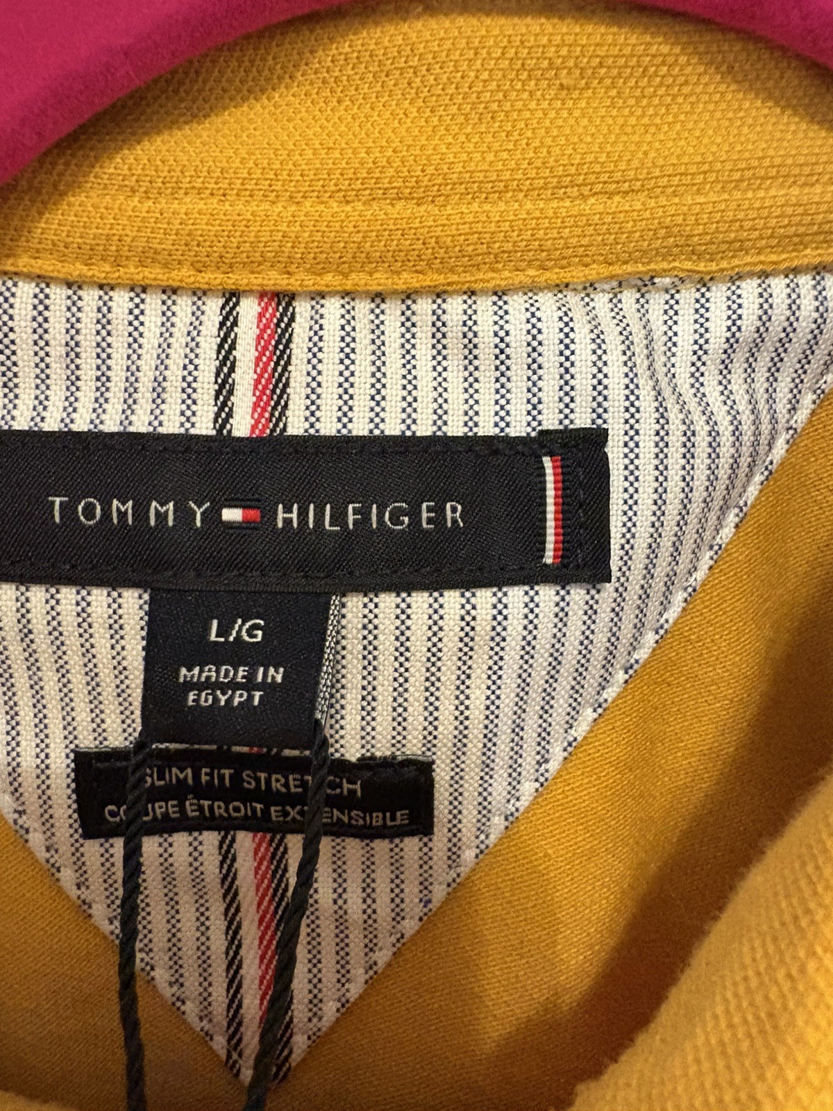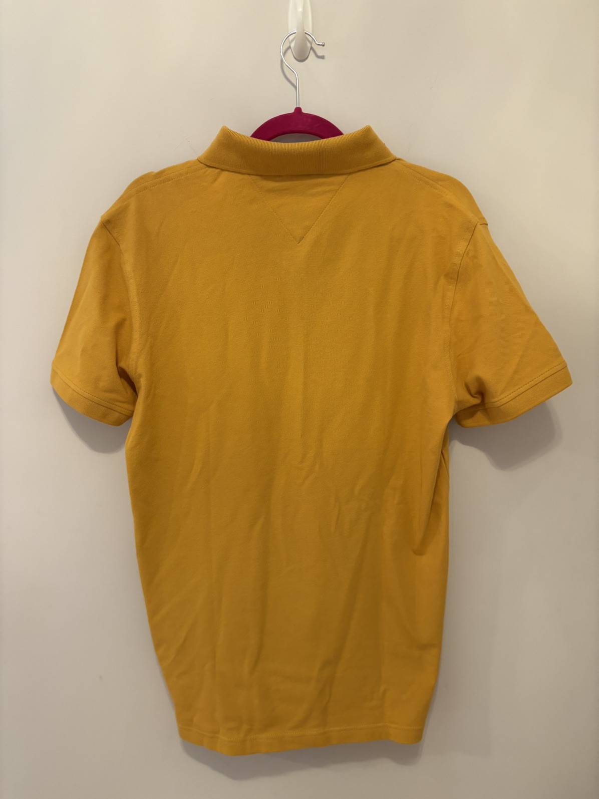 как выглядит Tommy Hilfiger Mens Slim Fit Solid Stretch Mesh Short Sleeve Polo Gold Large фото