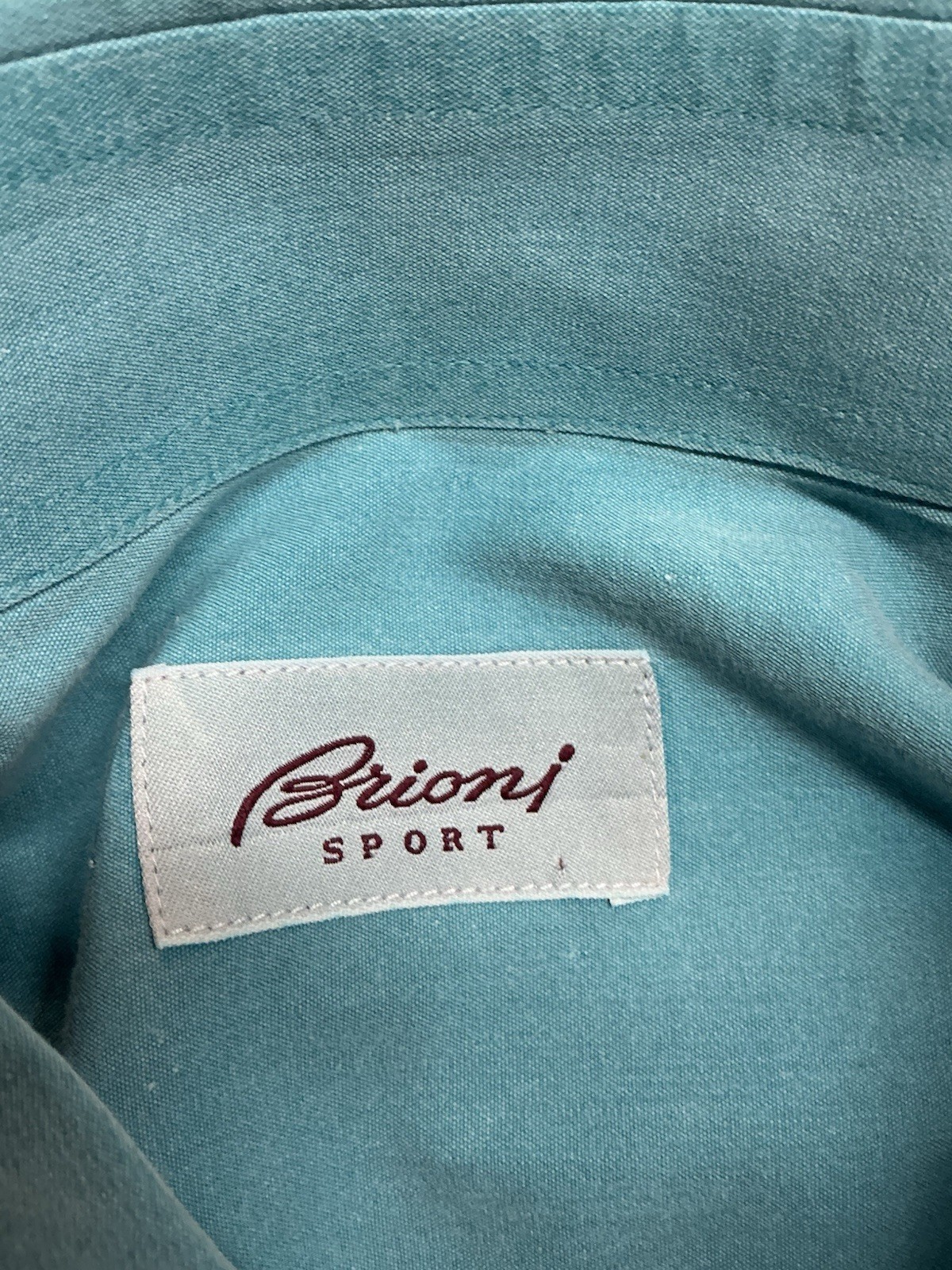 как выглядит Brioni Sport Mens Large Button Down Dress Shirt Light Blue Made In Italy FLAW фото