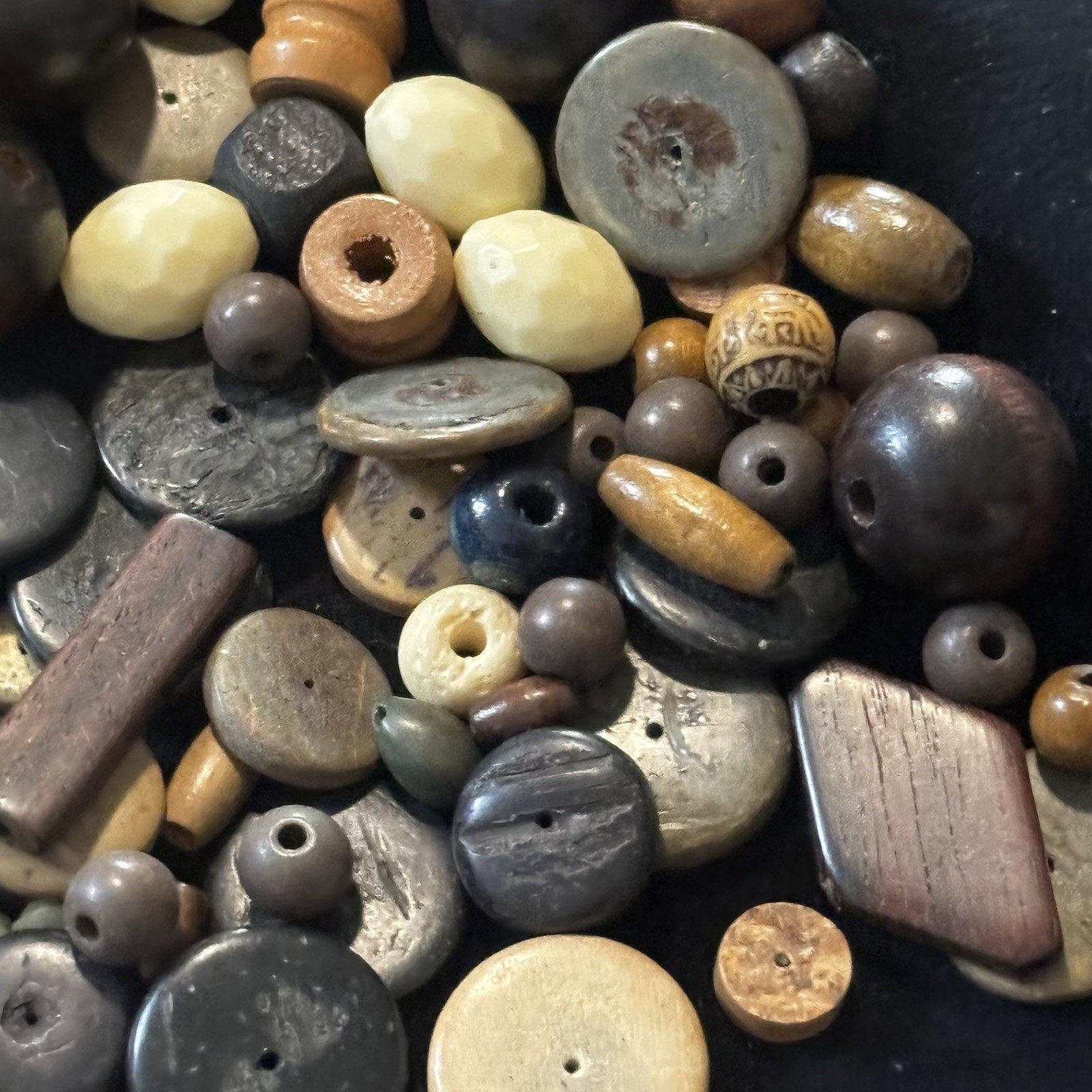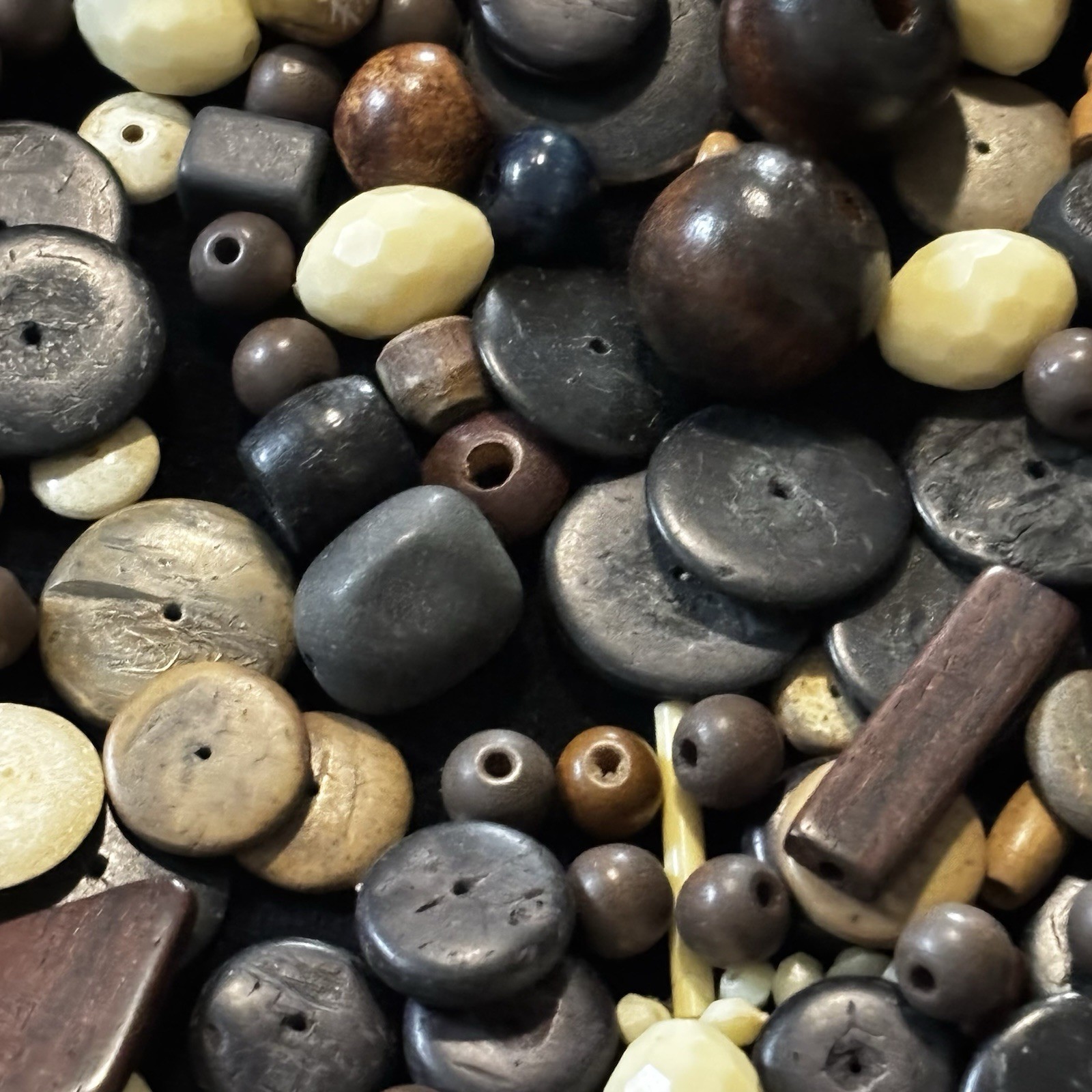 Wood Bead Lot 113g Mixed Natural Brown Tribal Boho Craft Jewelry Making