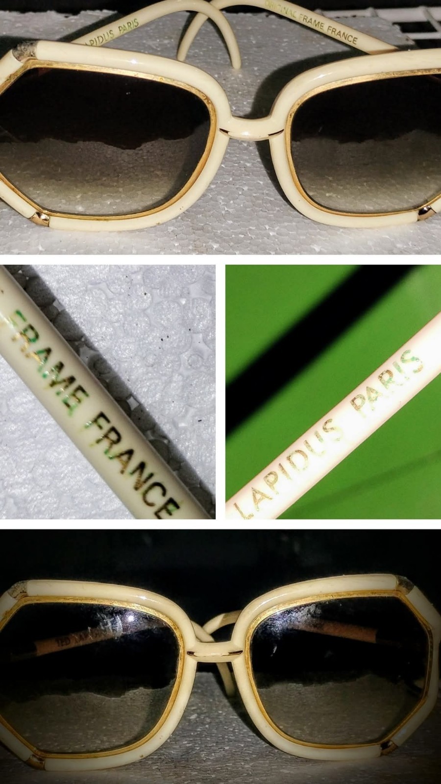 как выглядит Vintage Ted Lapidus Sunglasses Oversize Stunner Shades White Gold Frame 70s фото